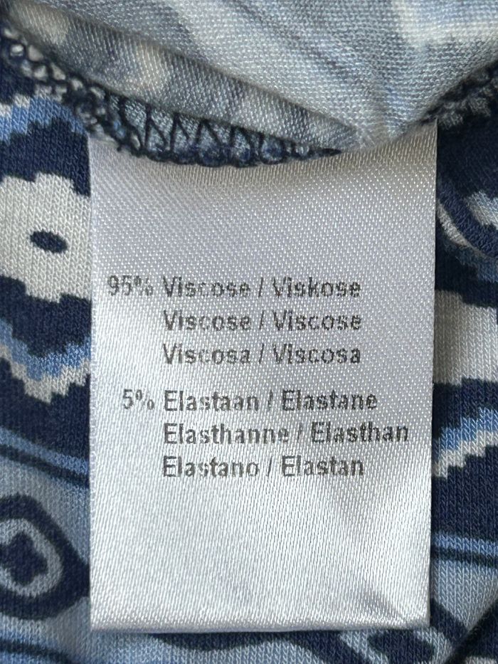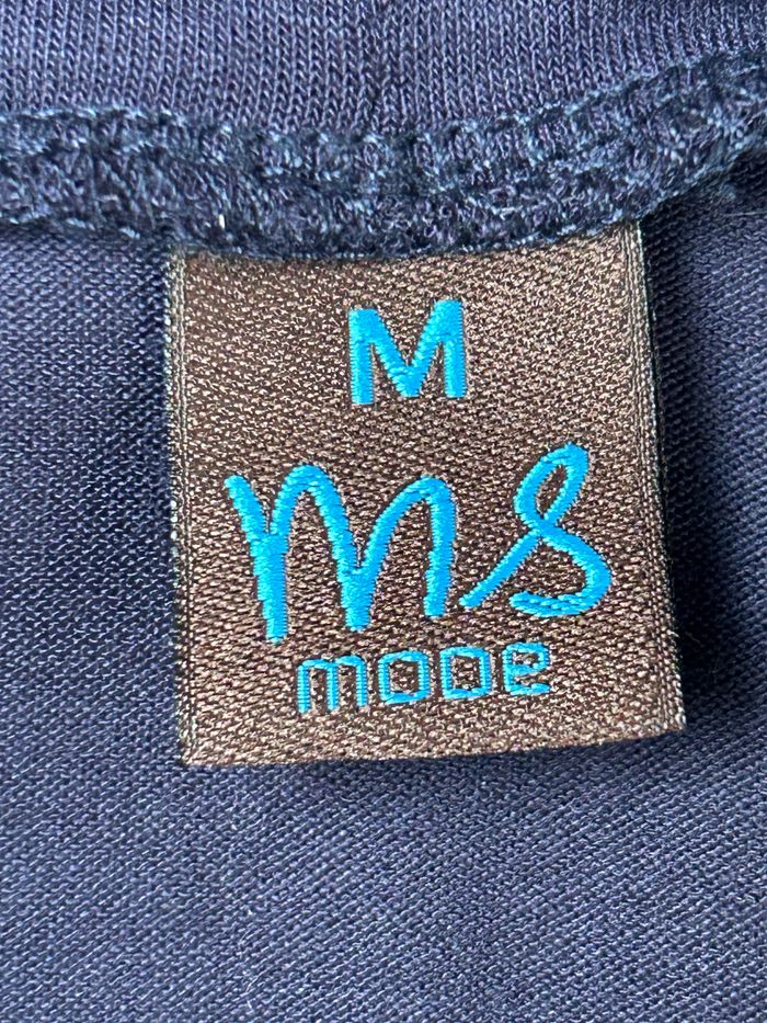 Tee-shirt bleu MS Mode Taille M La mesure d'aisselle à aisselle est de 51 cm. La longueur est de 77 cm. 95% Viscose 5% Elasthanne