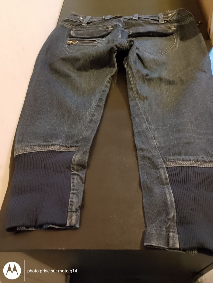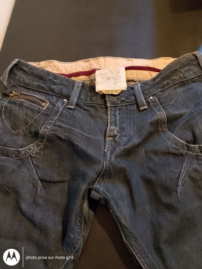 pantacourt en jean, resserre en bas avec un tissu elastifié. 2 poches derrière, et devant.fermeture à zip - marque Guess T40