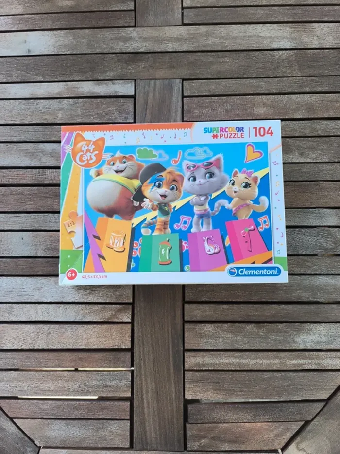 Puzzle 44 cats supercolor de clementoni 104 pièces Complet en très bon état, légers défauts sur quelques pièces (voir photos). Boite abîmée #jeyssihkapuzzles Boite 5