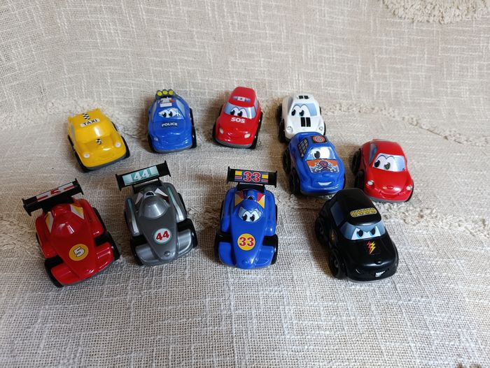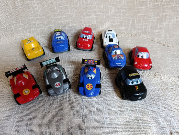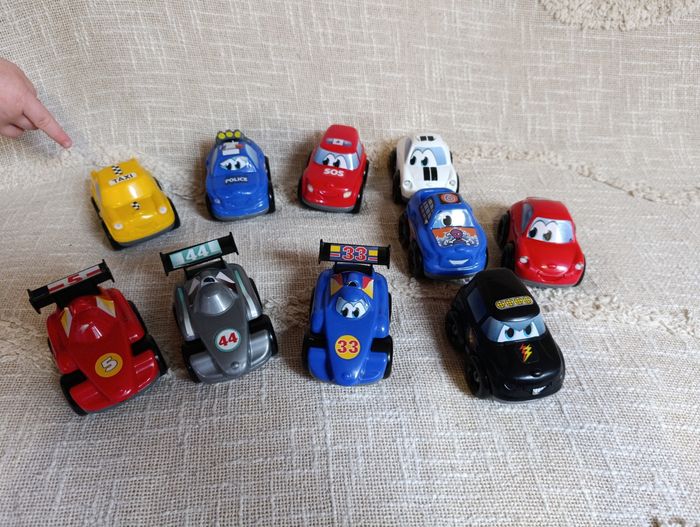 Lot de 10 petites voitures colorées 🚗 Style dessin animé, type Cars. 🚓 Police 🚕 Taxi 🚑 SOS 🏎️ Voitures de course numérotées 🚘 Modèles variés 🎨 Couleurs vives 👶 Idéal pour petites mains 🧸 Parfait pour jouer, collectionner ou compléter un circuit 👉 Bon état général 👉 Traces légères d’usage possibles quelques autocollants enlevé 👉 Vendues en lot Super idée cadeau à petit prix 💛 📦 Envoi rapide et soigné 👉 Retrouvez d’autres articles dans mon dressing