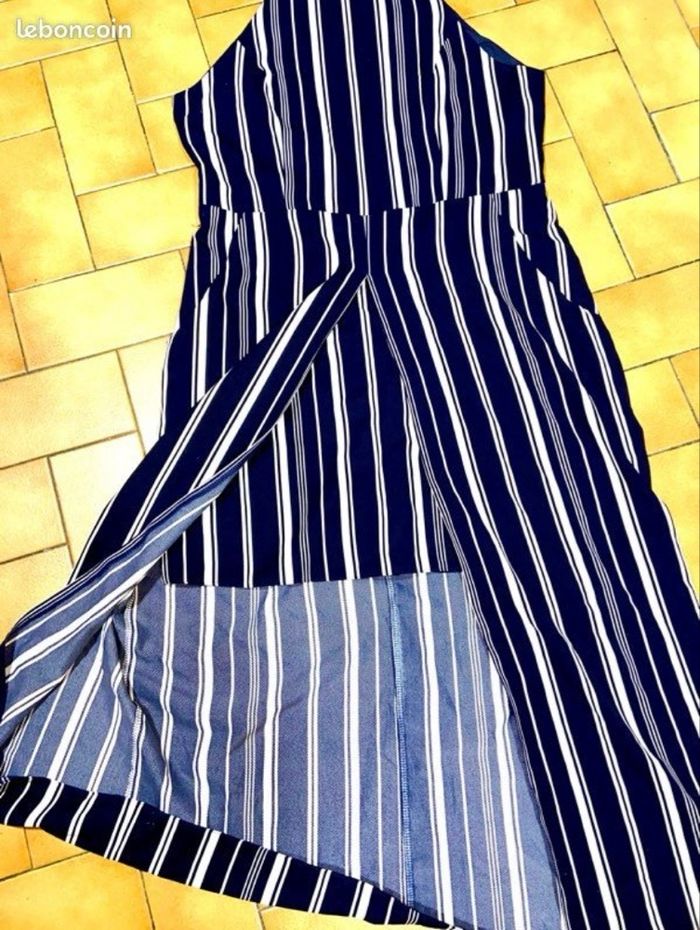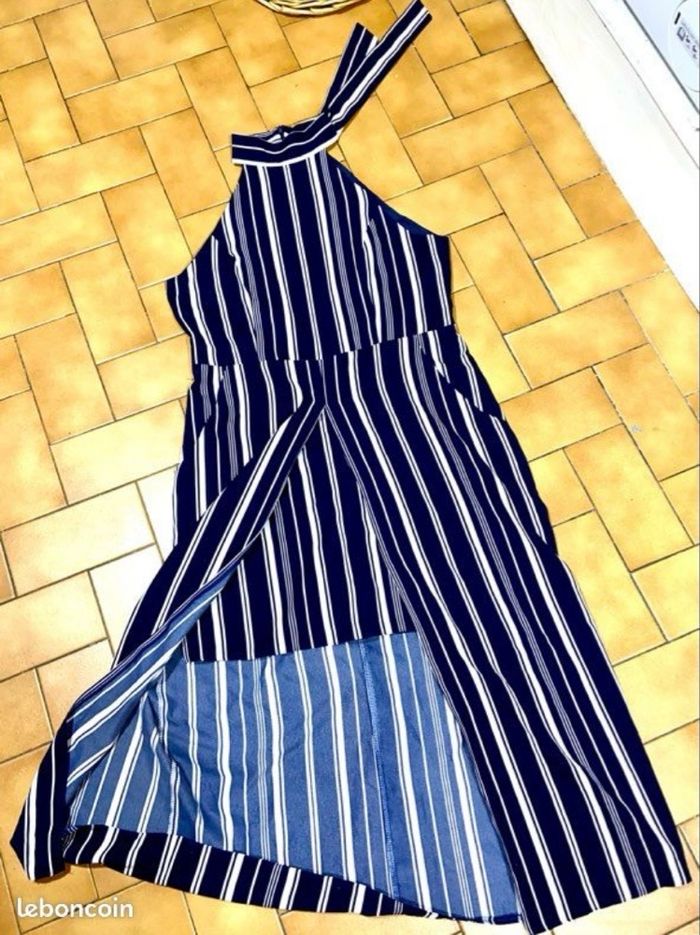 Robe à rayures couleur blanche et bleue taille L marque voyelles bon état avec ceinture ( pas mise sur la photo)