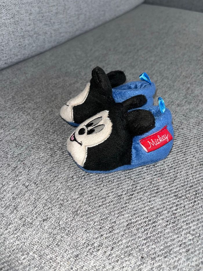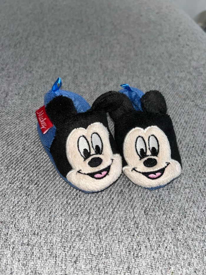 1 paires de chaussures souples taille 0-3mois Et 1 paire de pantoufles Mickey taille 0-3mois également En très bon état