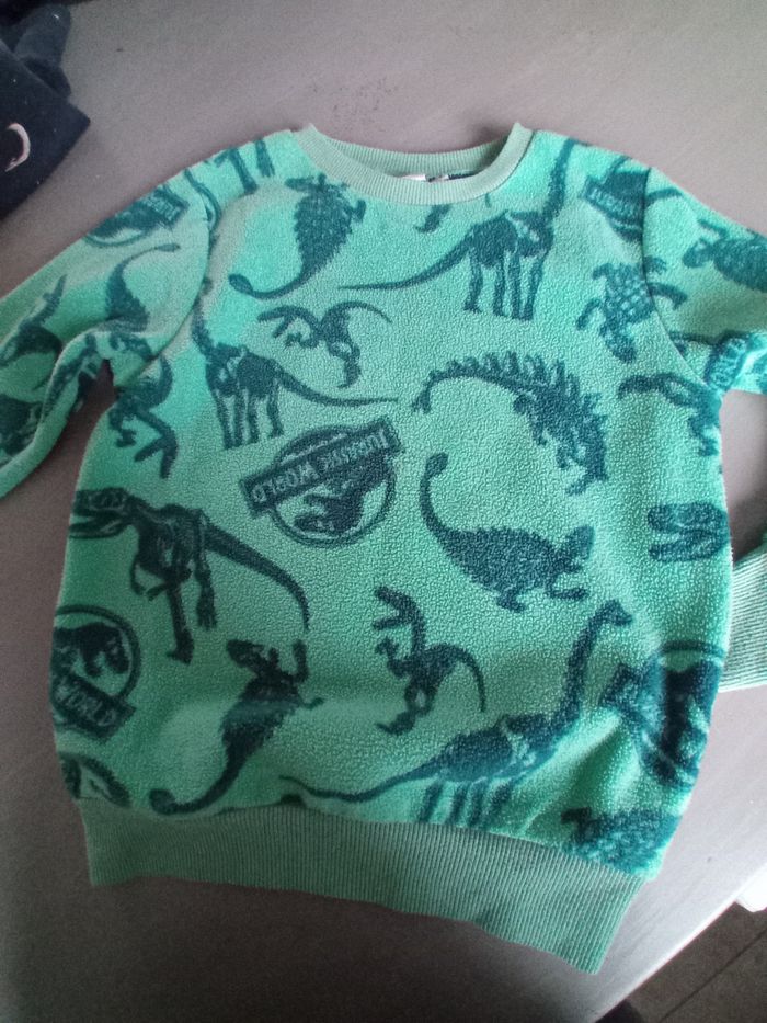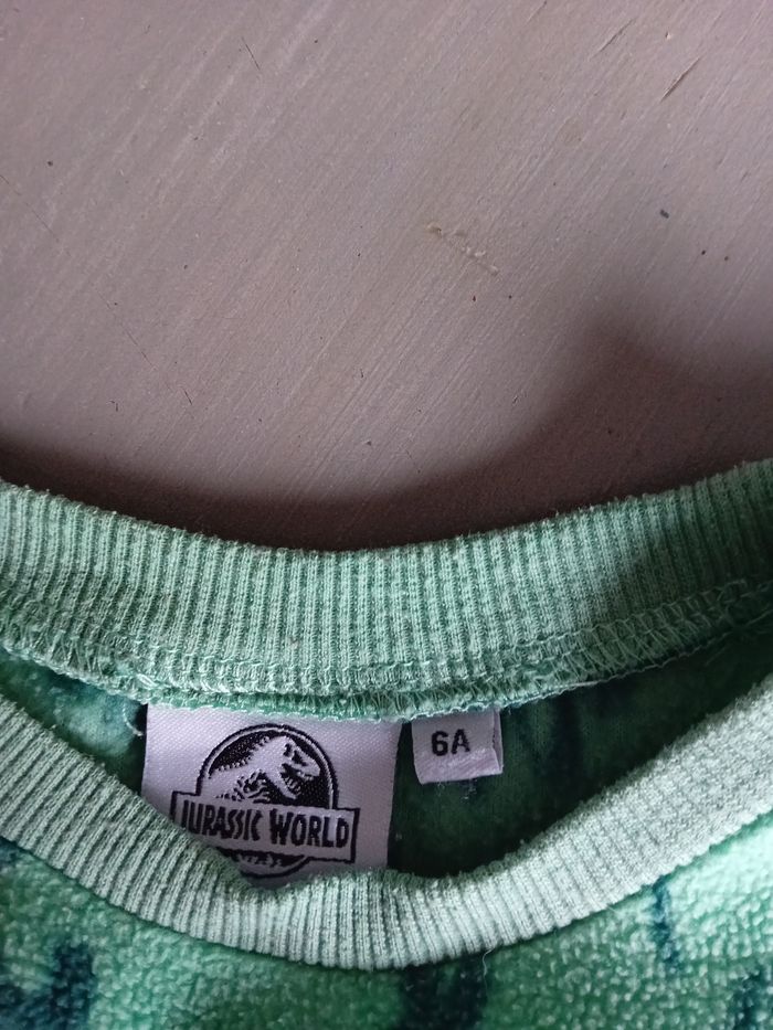 2 pulls 6 ans Jurassic world vert menthe et planète marine Très bon état