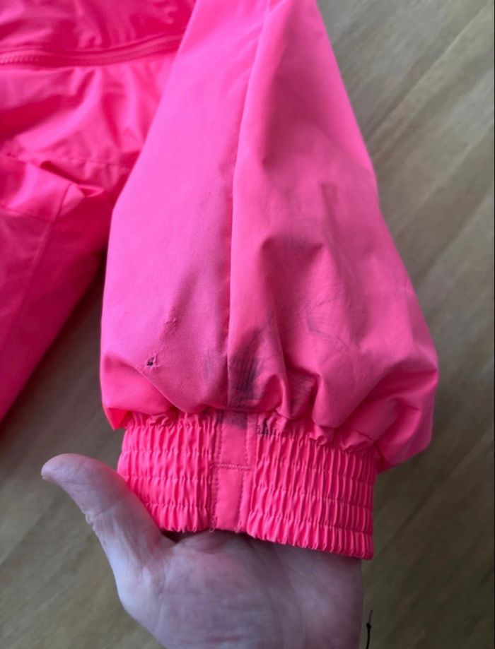 Combinaison ski décathlon , porté 5 jours mais quelques qui partent pas à la machine et un accro sur la jambe gauche. Taille 3-5 ans ( 98-112cms)