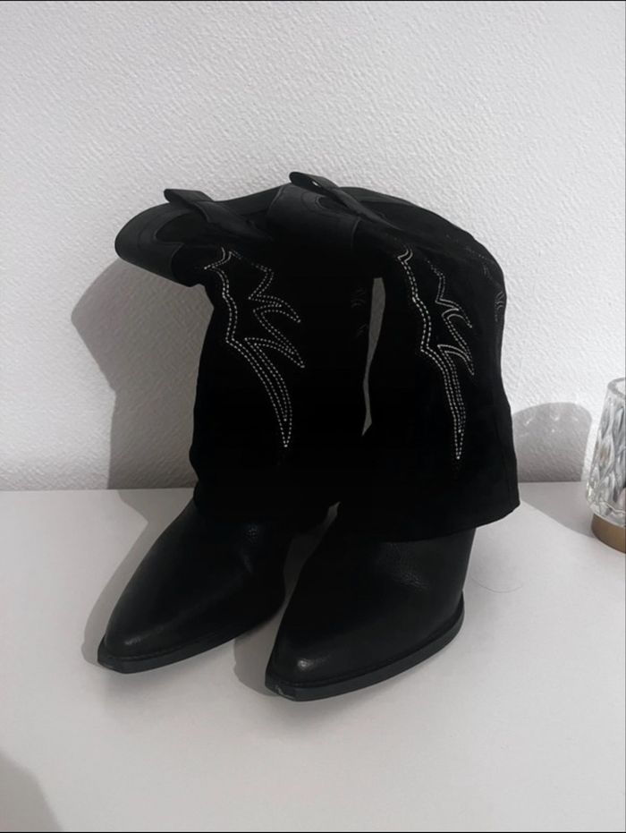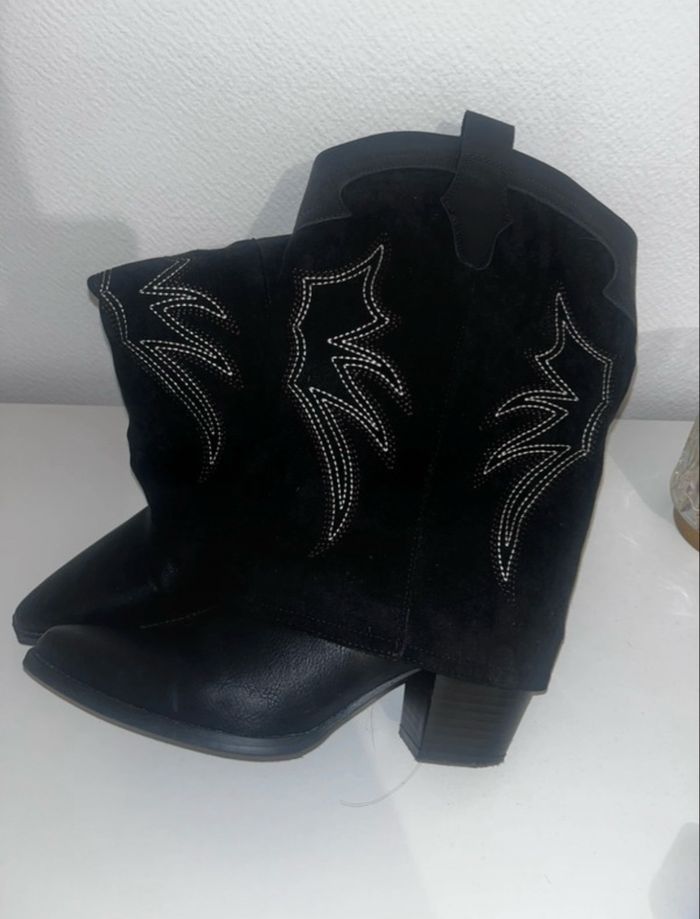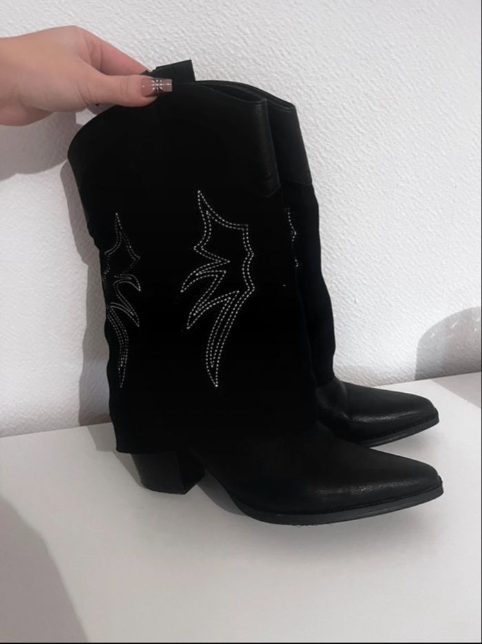 Je vends une paire de santiags en très bon état je les ai acheté, il y a un mois et demi Porter cinq fois Le prix de base est de 60 €