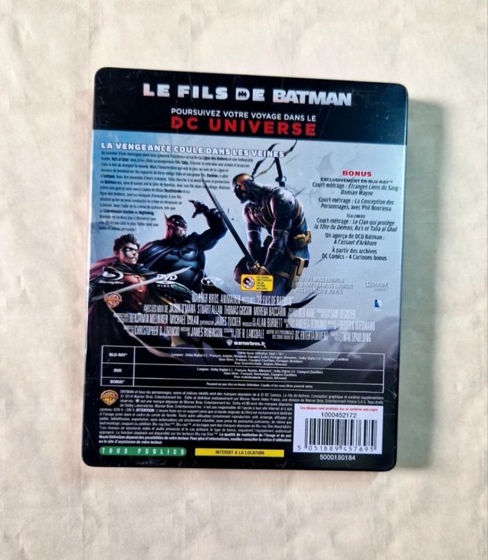 Bonjour, ​Je propose ce film d'animation issu de l'univers DC Comics en édition Steelbook limitée. ​Détails de l'objet : ​Contenu : "Le Fils de Batman" (Son of Batman) en Ultimate Edition incluant Blu-ray et DVD. ​État physique : Le tout est en très bon état général. ​Complétude : Complet avec son boîtier Steelbook, le disque Blu-ray, le disque DVD du film et le disque DVD de bonus. ​ #Batman #DCComics #Steelbook #Bluray #Animation #WarnerBros #Collector