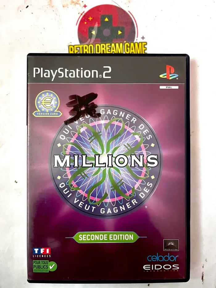 Qui veut gagner des millions 2nd edition pour PS2 Vendu avec la boite et la notice Le cd a quelque rayure mais fonctionne niquel et la boite a quelque marque et la jaquette a l'arriere et un peu coler envoi soigne en 48h Max