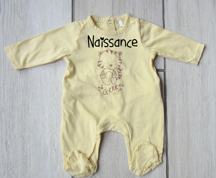 Grenouillere de coloris jaune. Taille naissance. Marque Orchestra. Très peu portée.