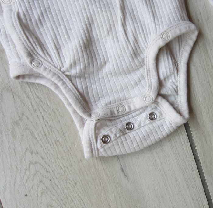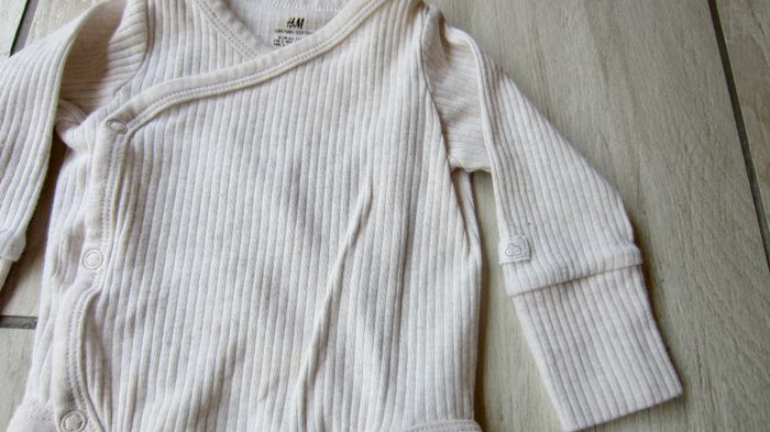 Bodie évolutif. 2 hauteurs de pressions. Forme cache coeur. Taille 2/4 mois. Marque H&M. Coloris écru.