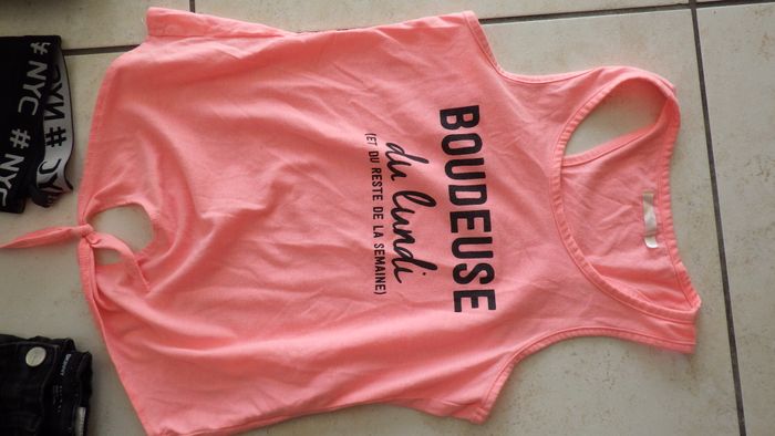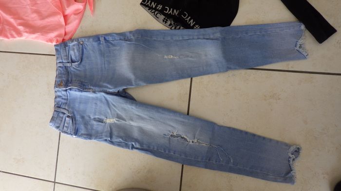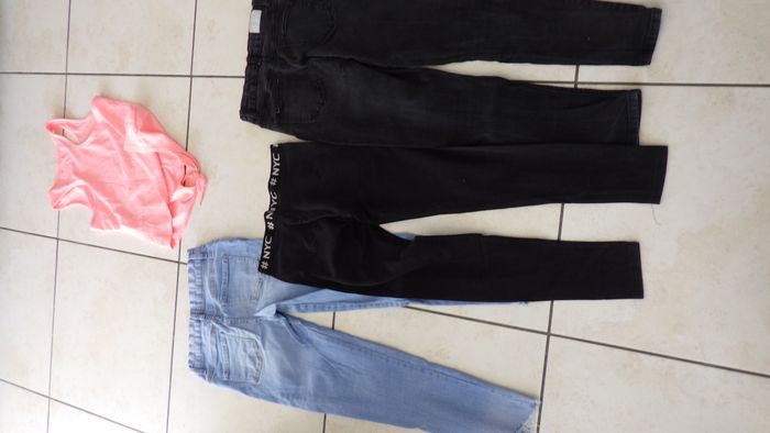 lot de 4 vêtements pour fille taille 12/13ans, composé de : - 1 jean élastiss délavé avec des déchirures devant, marque Denim & Co, - 1 jean élastiss slim noir, marque Denim & Co, _ 1 legging noir un peu chaud en coton et élastane, marque Primark, ceinture élastique avec logo #NYC en blanc, _ un débardeur en coton couleur abricot avec inscription noire "boudeuse du lundi (et du reste de la semaine), noué devant, marque Blog. Beaucoup d'autres lots en vente dans mon dressing, remise pour l'achat de plusieurs pièces. Visitez le reste de mon dressing j'ai des centaines de chaussures, vêtements, accessoires en vente pour homme femme et enfant, des marques les plus basiques aux plus luxueuses, pour tous les budgets. Abonnez vous à mon profil pour recevoir mes nouvelles annonces en priorité !