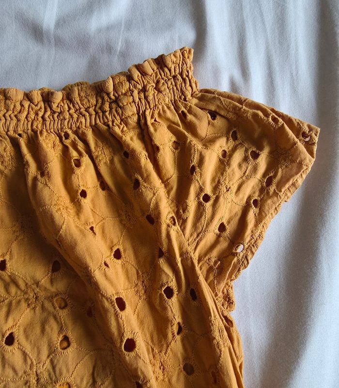 Le Temps des Cerises Top Broderie Anglaise Coton Moutarde Très bon état Taille 2 (M) - photo numéro 7