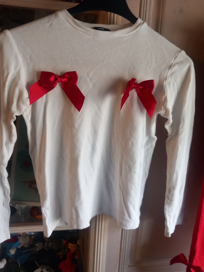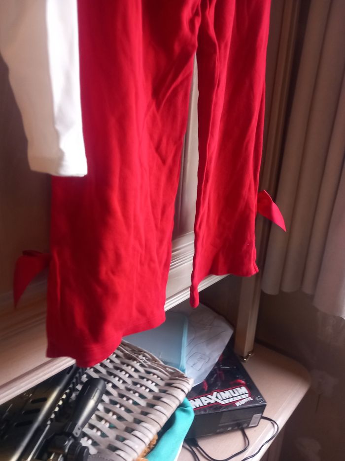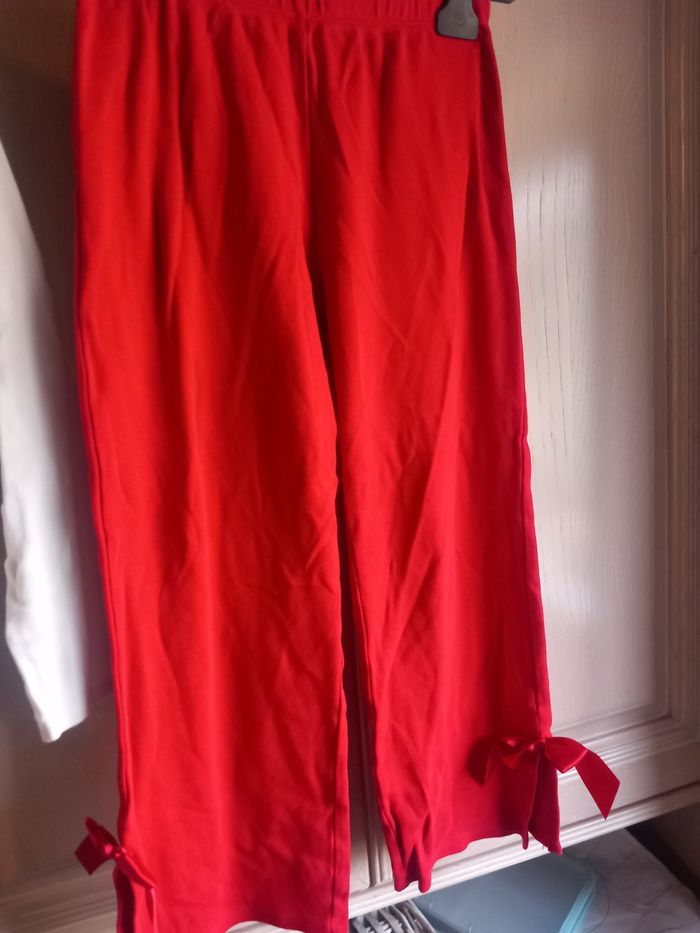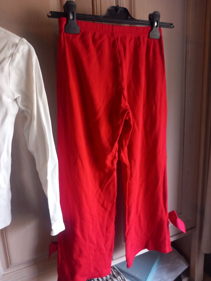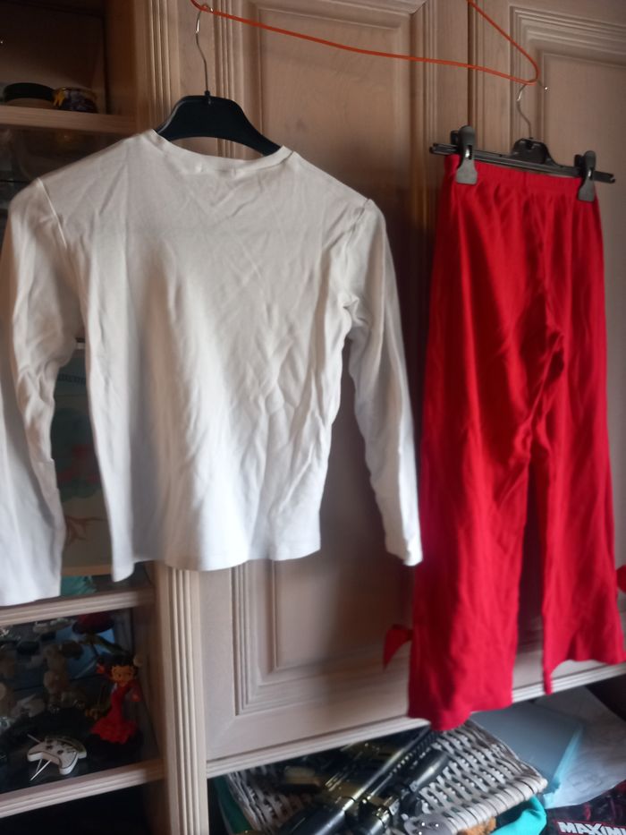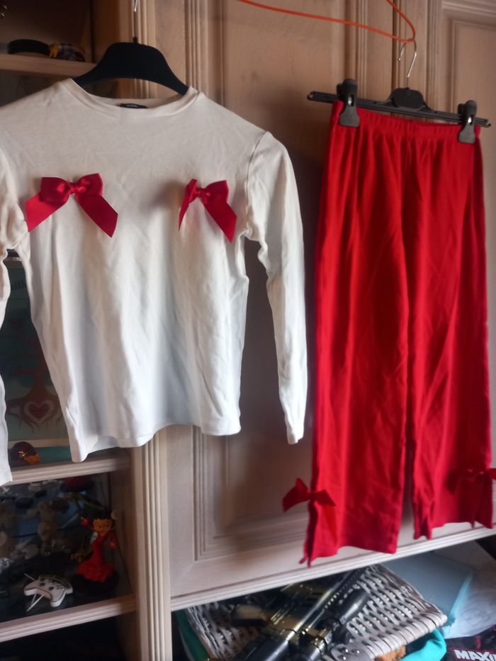 Pyjama 2 pièces fille Motifs nœuds papillons Matière coton Taille 8/9 ans Couleurs rouge et blanc Pantalon taille élastique Marque Tezenis Dimensions approximative haut 47cm de long : largeur sous aisselles 44cm : largeur d'épaules 40cm : longueur de manche 50cm : pantalon : 71cm de long : largeur à la taille 36cm En très bon état