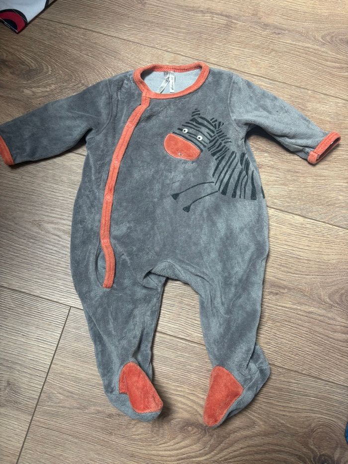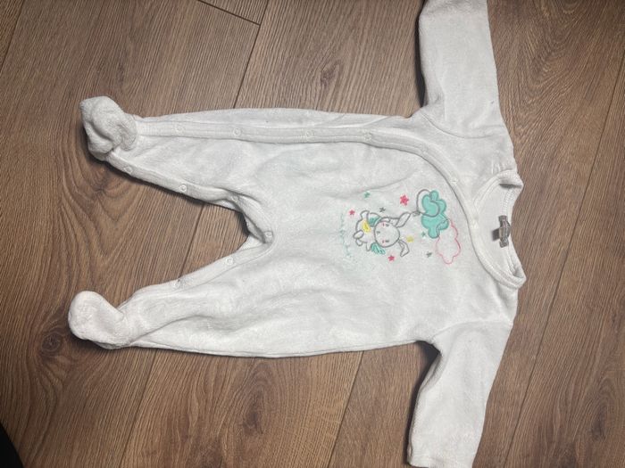 Lot de 2 pyjamas taille 1 mois : - blanc motif lapin Grain de Blé - gris motif zèbre Orchestra