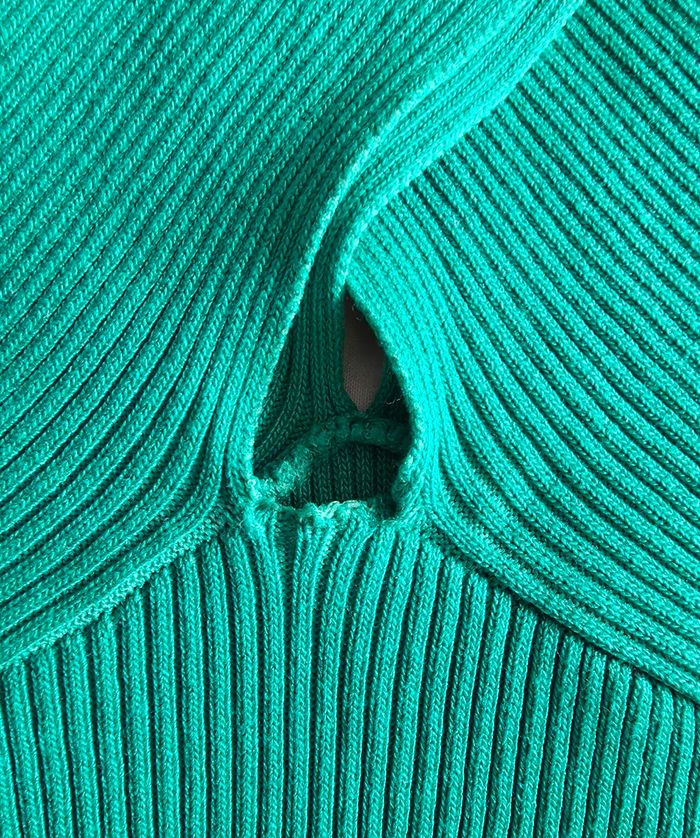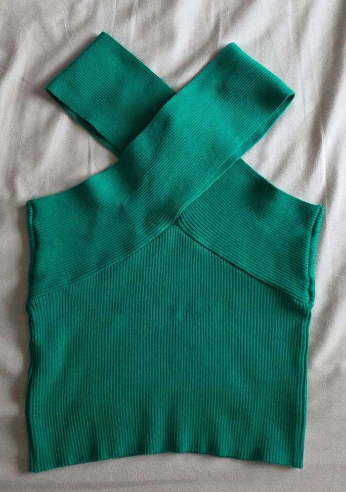 ​✨ ÉTAT : Très bon état général. À noter un léger accroc au niveau du décolleté (voir photos), mais qui reste discret grâce au jeu de plis de la matière. La couleur verte est restée très vibrante. ​📏 TAILLE & COUPE : Taille Unique (TU). Coupe ajustée et extensible grâce à la maille côtelée. Le col croisé apporte une touche très élégante et originale. ​🌿 MATIÈRE : Composition confortable de 68% Viscose et 32% Polyester. Le tissu est doux, frais sur la peau et possède une belle tenue. ​📦 LIVRAISON : Envoi via Mondial Relay (lockers), Shop2Shop ou Chronopost (point relais physique). ​🎁 Réductions sur les lots activées ! C'est le moment de craquer pour plusieurs articles.
