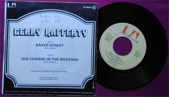 🎵 Gerry Rafferty – Baker Street 🎵 Edition 1978 – United Artists Records – UP36346 Inscription sur l'arrière de la pochette, trace de frottement sur le disque ne gênant en rien l 'écoute. Face A: Baker Street 4'10 Face B: Big change in the weather 5'35 .