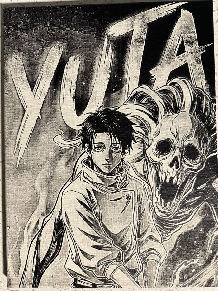 Tableau Yuta Jujutsu Kaisen noir et blanc – toile manga 30x40 cm déco murale puissante