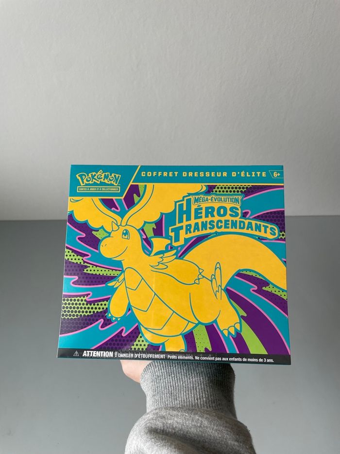ETB Pokémon Héros Transcendants ME 2.5 neuve Scellage parfait Seulement quelques-unes disponibles Envoie rapide et protégé pour préserver le scellage Large choix d’item pas forcément listé sur mon compte (bundle, ETB, cube case, upc, carte) Si vous avez des questions n’hésitez pas à me contacter 😊