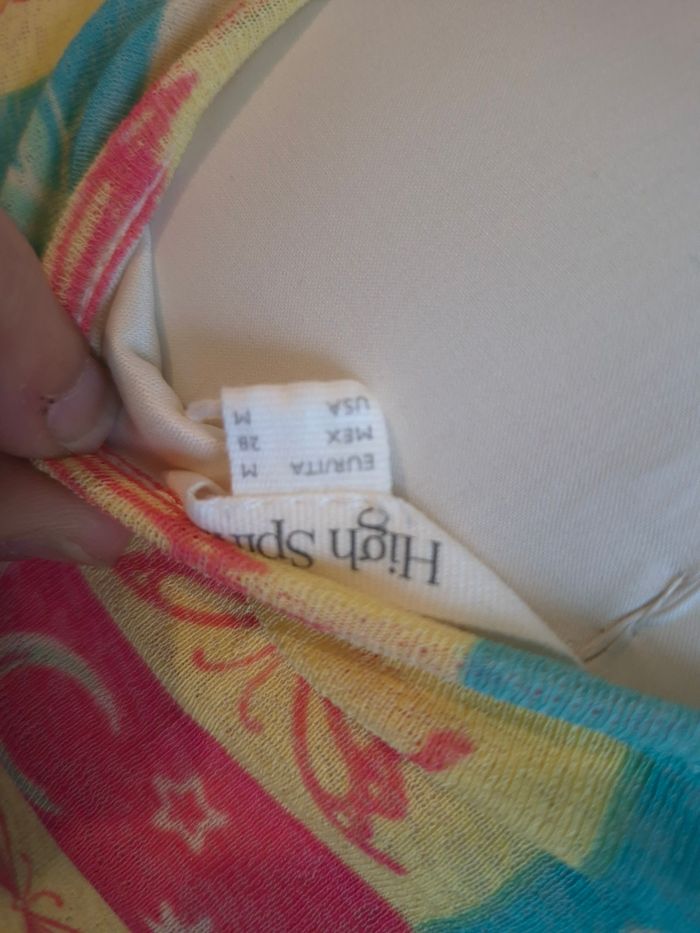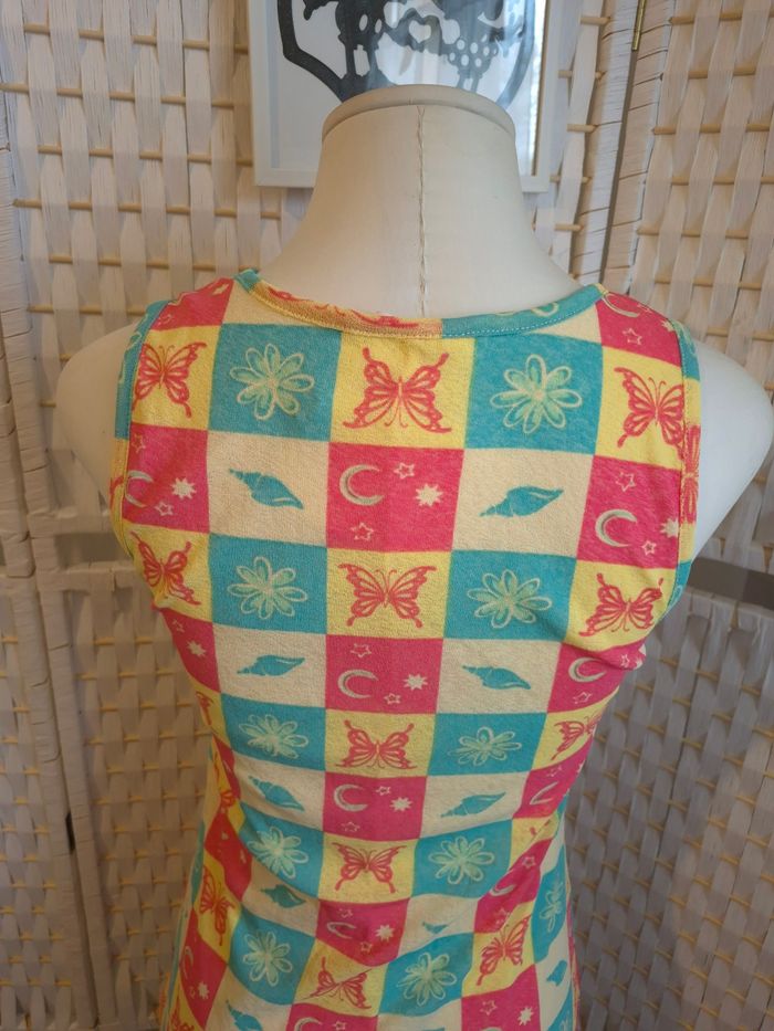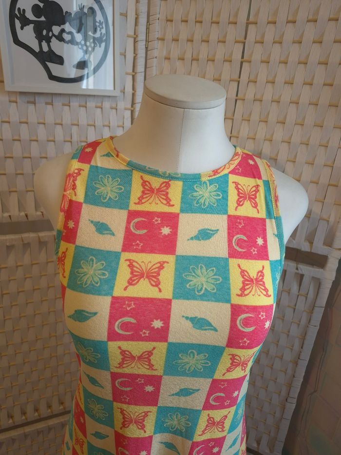 Jolie robe courte moulante imprimé damier pastel Y2K High Spirits femme TM / 38 ​ ​✨ Superbe robe courte High Spirits au style résolument rétro / années 2000 (Y2K). • ​Détails du motif : Imprimé damier tricolore (jaune, bleu turquoise, rose corail) avec des illustrations de papillons, lunes, fleurs et coquillages. Un look très "Summer Vibes" et original ! • ​Coupe : Coupe ajustée (bodycon), sans manches avec un col rond. Finition "lettuce hem" (bordure ondulée) très tendance sur le bas. • ​🧵 Confort : Matière légère et extensible (100% polyester), entièrement doublée pour éviter la transparence (voir photo de l'intérieur). • ​✅️ État : Excellent état, très peu portée. • ​📏 Taille : M (convient à un 38). ​Infos pratiques : ​🚭 Maison non-fumeur. 📦 Envoi rapide et soigné. 💡 Réduction sur les lots activée : n'hésite pas à faire un tour dans mon dressing pour rentabiliser les frais de port ! ##ribeirozazafemme38 ​#robeete #robecourte #y2kstyle #vintagevibes #damier #pastelaesthetic #highspirits #festivaloutfit #bohostyle #butterflyprint #ribeirozazafemme38 # femme38 #38femme #etefemme #ete38 #38ete #robe38 #robedete