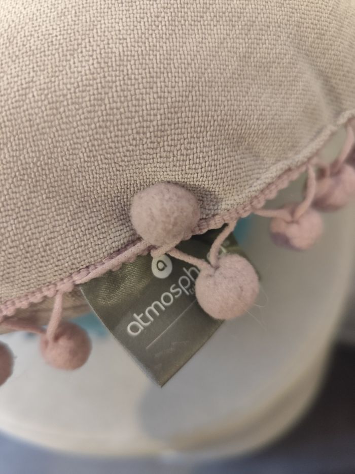 Lot de 4 coussins gris et bleu avec pompons Marque atmosphera