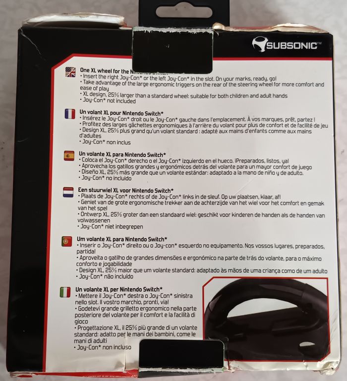 Volant format XL 16cm x 15cm pour une prise en main optimale Taille idéale pour jouer dans les meilleures conditions à Mario Kart 8 et à vos jeux de course préférés sur Nintendo Switch Avec gâchettes déportées pour les boutons latéraux Facile à utiliser, il suffit d'introduire le Joy-Con à l'intérieur. Compatible avec les joycons droit et gauche Les Joy-Con ne sont pas fournis avec le volant