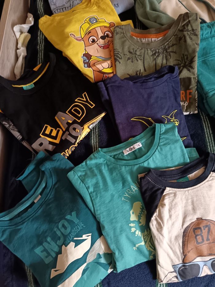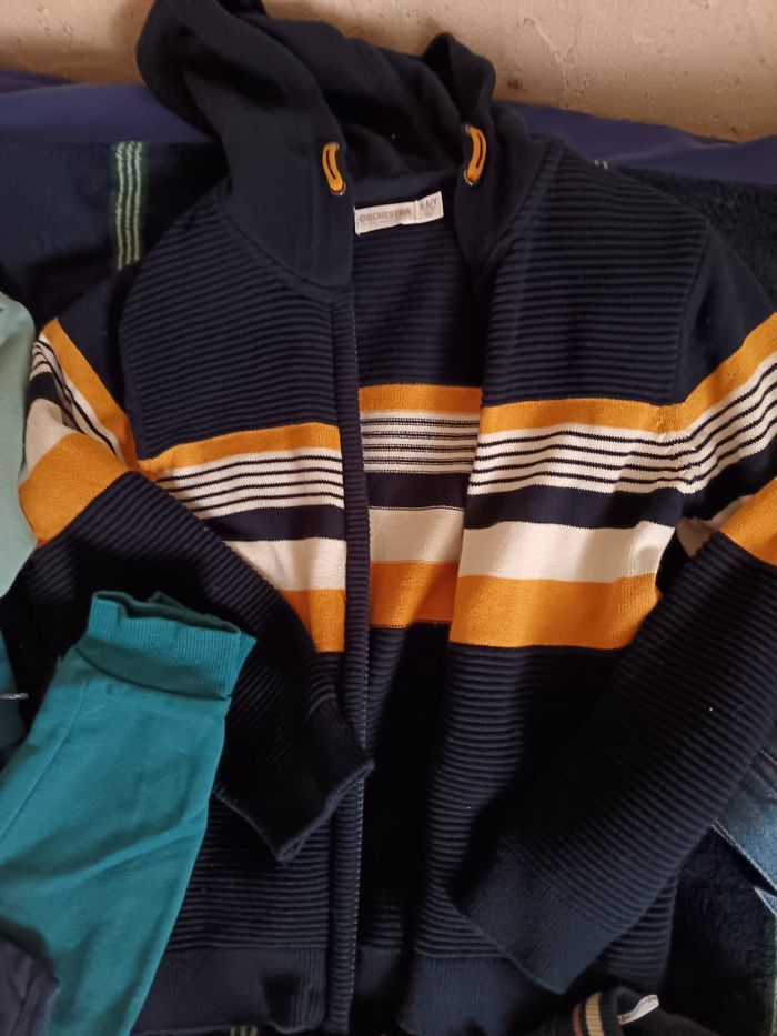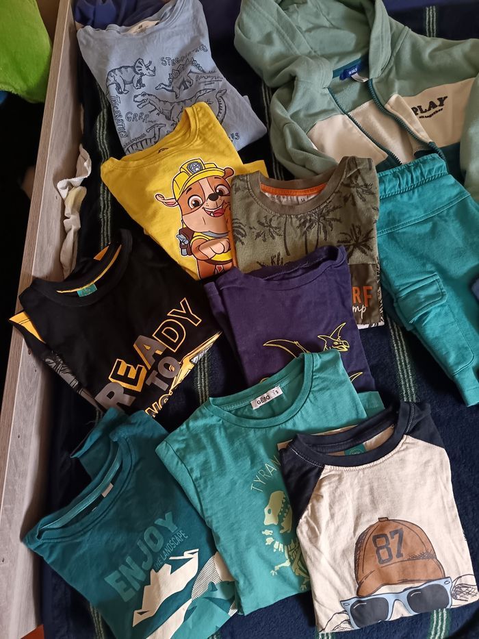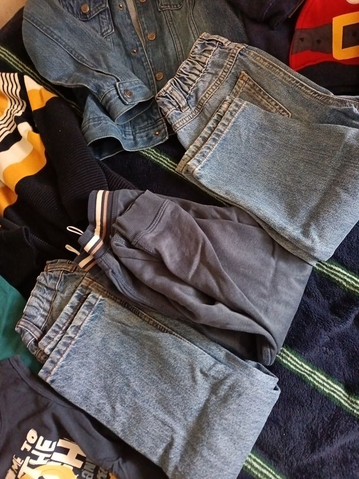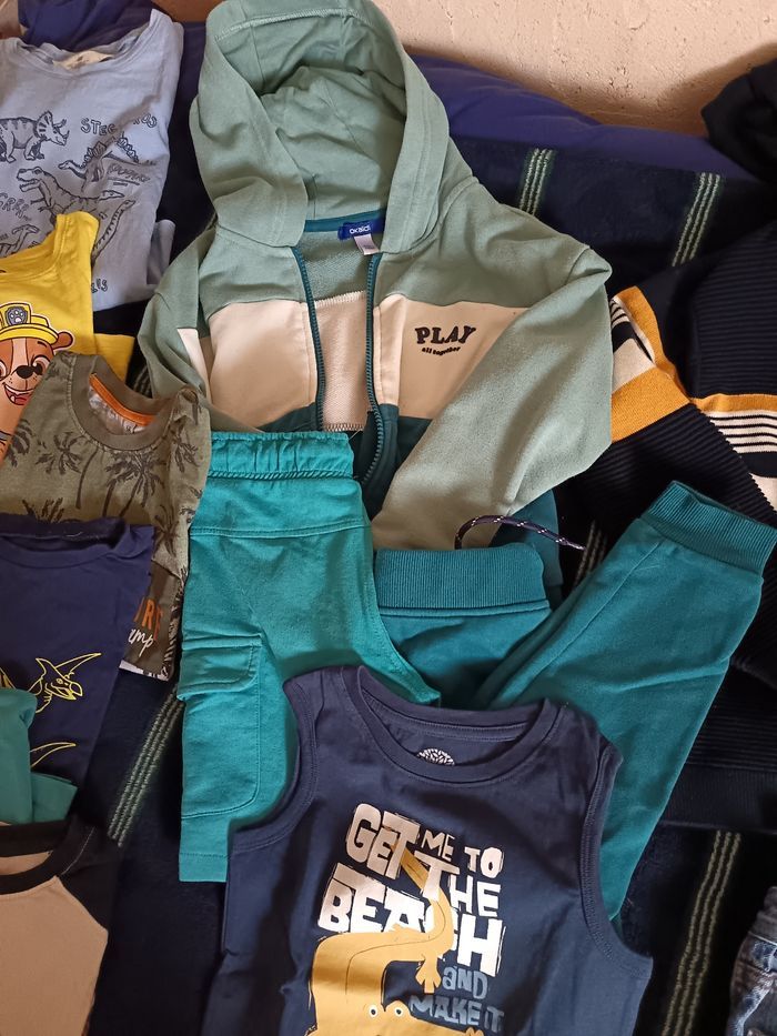 Marques diverses : Orchestra, c&a, Okaidi.... 20 pièces dont qqs articles neufs : 2 jeans 2 bas de survêtement 2 pulls dont 1 Noël 2 débardeurs 1 short 2 gilets zippes dont neuf Orchestra 1 blouson jean neuf Orchestra 3 t-shirt manches courtes : dinosaures, Ruben de pat Patrouille 5 t-shirt manches longues Tbe