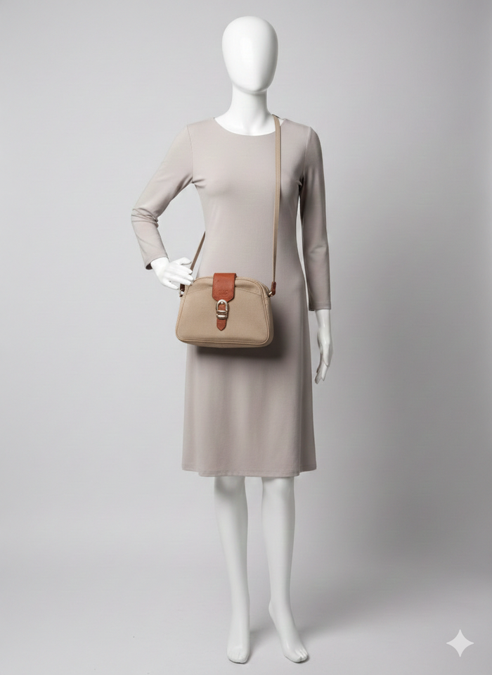 sac à bandoulière réglable beige et marron 3 poches Texier