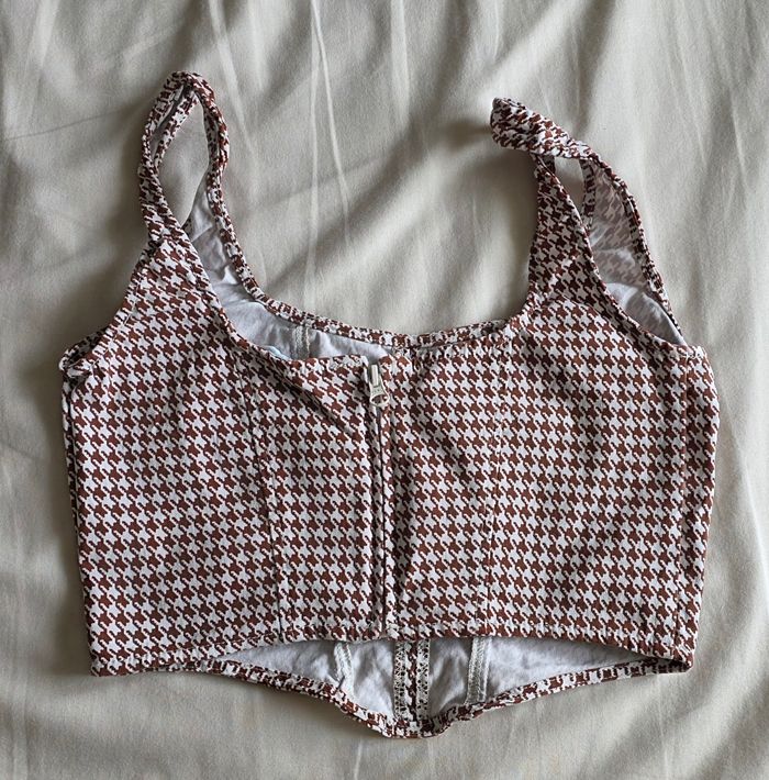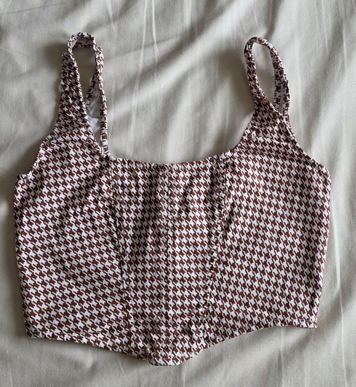 Primark Top Corset Viscose Pied-de-poule Marron Très bon état Taille 36 - photo numéro 1