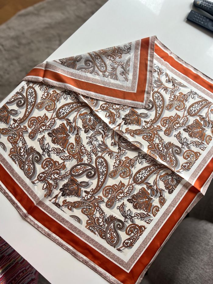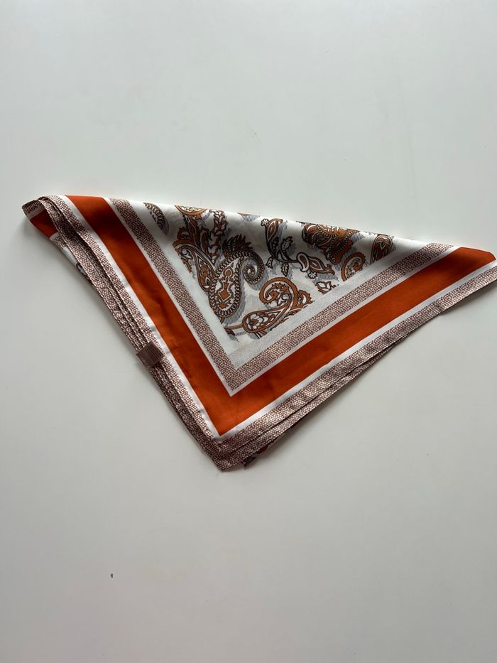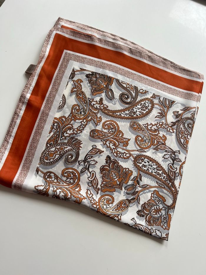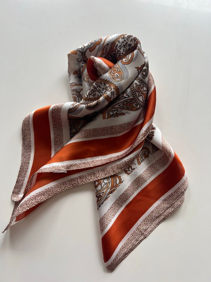 Magnifique carré, motif paisley chic et intemporel Taille 70×70 Composition: 20% soie et 80% polyester Peu se nouer : Autour du cou Sur un sac Dans les cheveux En ceinture