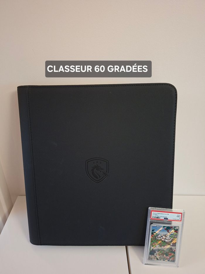 Classeur XL pour 60 cartes gradées Pokémon Psa , PCA , CGS , COLLECT-AURA etc.. Comptabible pour toutes les sociétés de gradation,  les cartes gradées sont bien maintenu et ne bougeront pas 🔥 -> Coloris NOIR ⬛️ Classeur premium de la marque firemint 🔥 29,90€ le classeur neuf (autres coloris dispo pour ce modèle de classeur) 😊 Également dispo : - Classeur 160 cartes , 360 , 480 , 768 , 1024 , 1280. - Zip pour 128 toploaders , 288 , 336 , 448 - Classeur cartes gradées 40 , 60 cartes Les modèles firemint sont dispo dans plus de 20 modèles et 50 coloris de la marque. Me contactez si vous avez des questions et si vous souhaitez créer un lot . Les classeurs sont top ! 😊