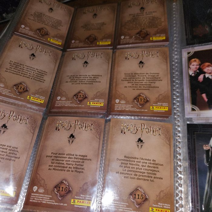 Cartes Harry Potter Bienvenue à Poudlard Panini – Vente à l’unité – Éditions limitées 🟦 Prix 0,70 € l’unité ⭐ Éditions limitées : 6 € l’unité cartes devenues rare : 6 euros unité ( CARTE NON DISPONIBLES EN ACHAT OFFICIEL) numéro concernés : 5 14 19 151 152 158 167 173 178 183 187 195 203 212 216 🟦 Description Je vends mes cartes Harry Potter – Bienvenue à Poudlard (Wizarding World) – Panini à l’unité. ✨ Nombreuses cartes disponibles 🌟 Cartes ÉDITIONS LIMITÉES disponibles : 6 € pièce ✔ Cartes en excellent état ✔ Rangées sous classeur après ouverture ✔ Non jouées, coins propres 💰 Cartes classiques : 0,70 € l’unité ⭐ Éditions limitées : 6 € l’unité 📩 Envoie-moi un message avec les numéros / personnages que tu cherches et je te confirme la dispo. 🎁 Remise possible si tu prends plusieurs cartes. 📦 Envoi rapide et soigné : sleeve + protection rigide / carton. ❗ Classeur non inclus.