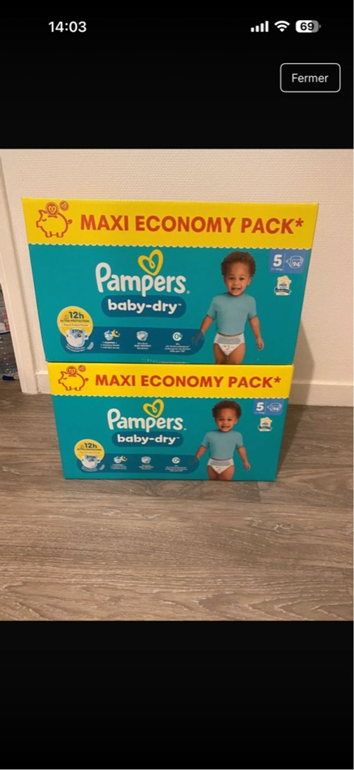 2 cartons de couches Pampers taille 5