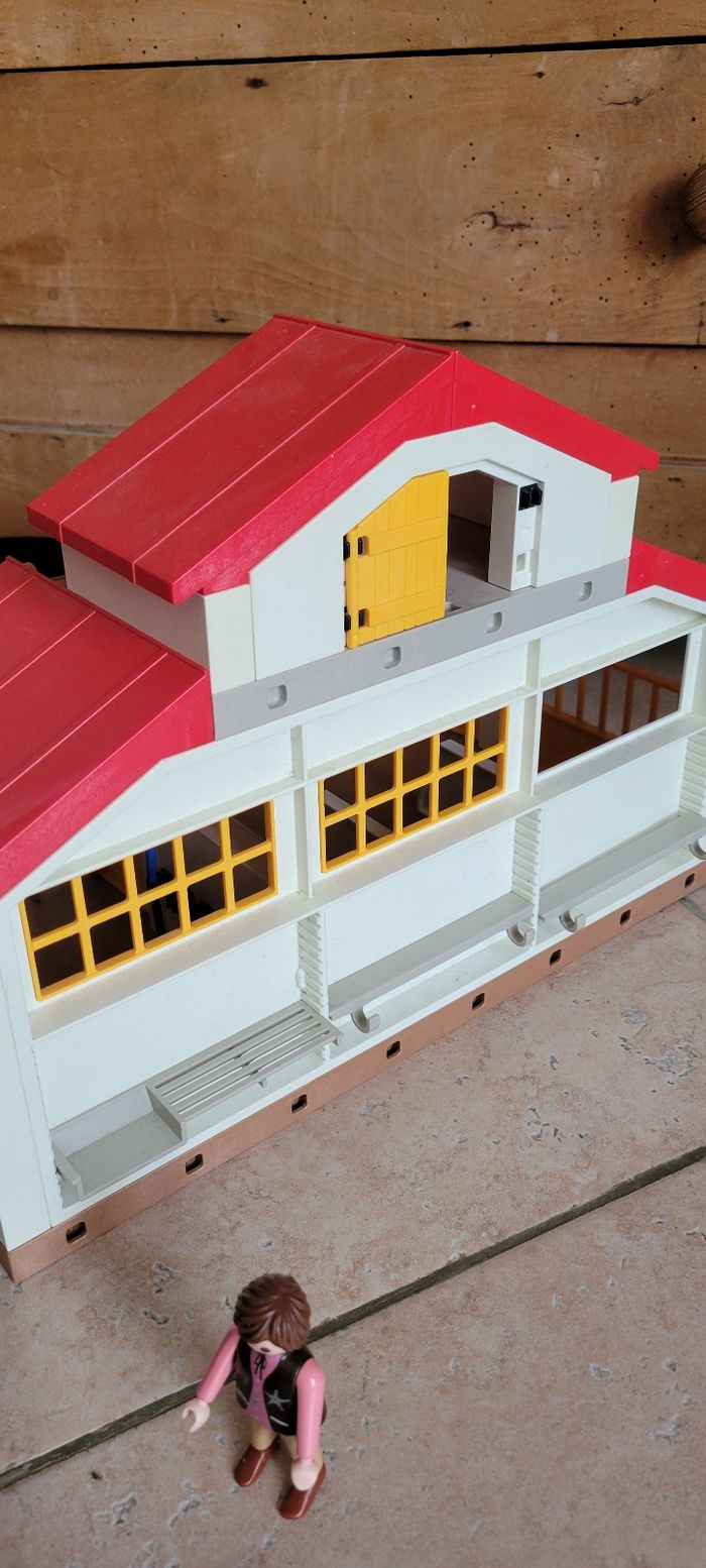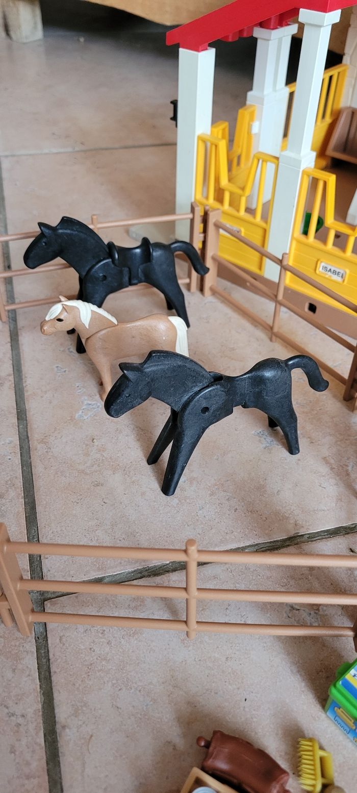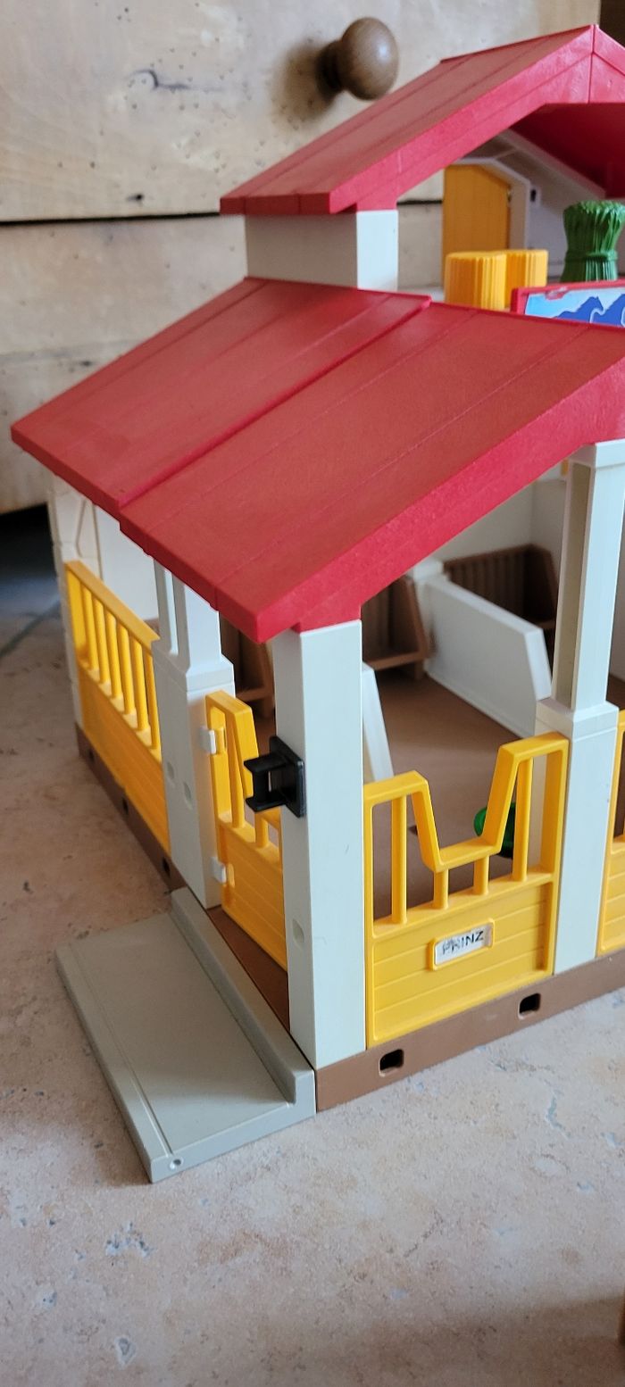 Structure d'écurie 4190. Vendu comme sur les photos 1 personnage, 2 chevaux, 1 poney, quelques accessoires