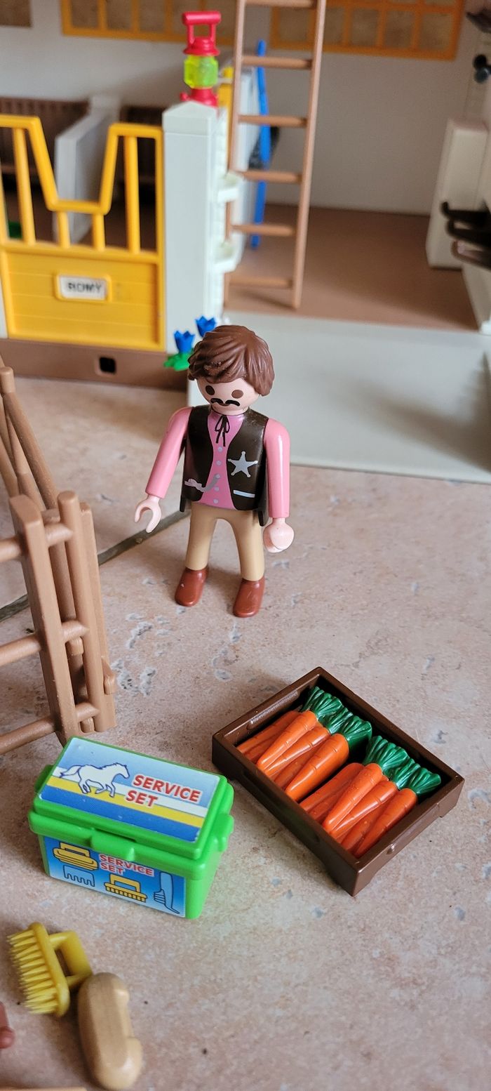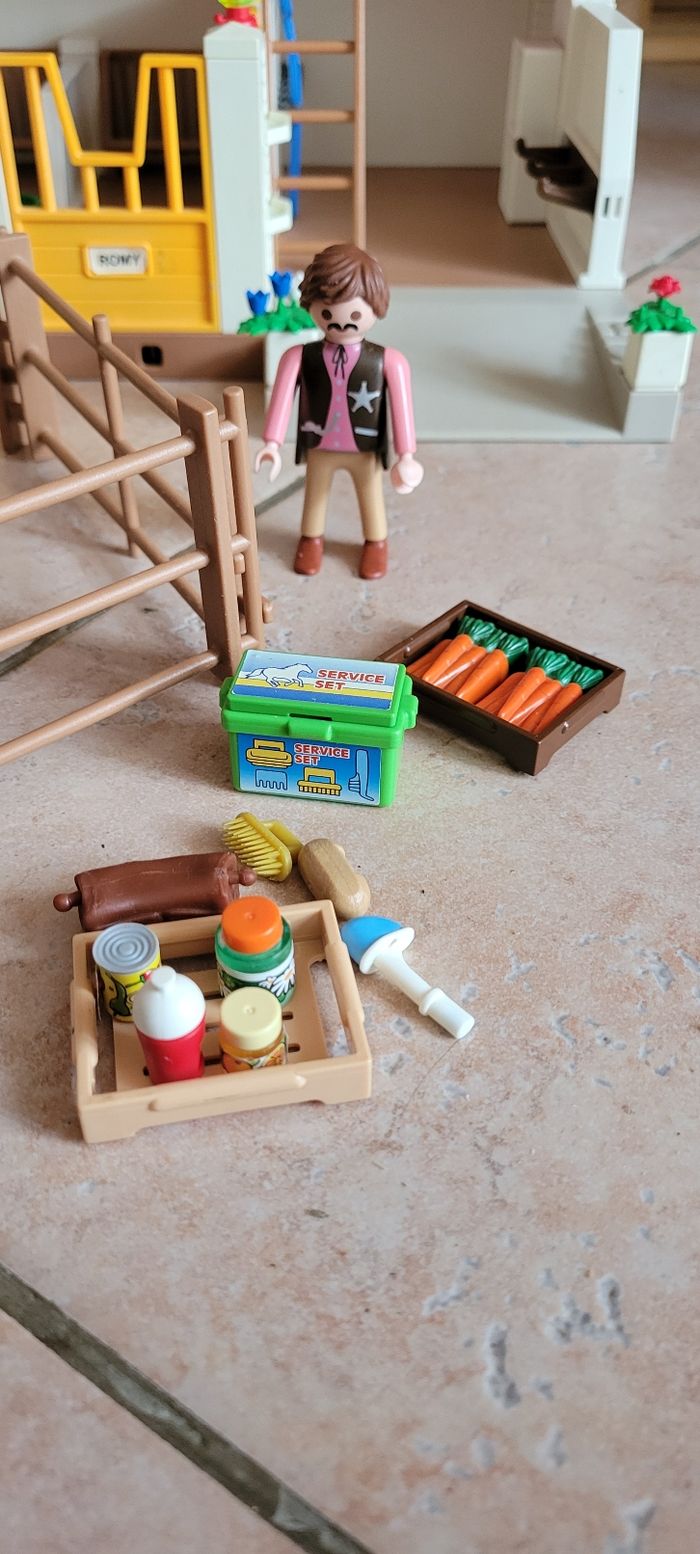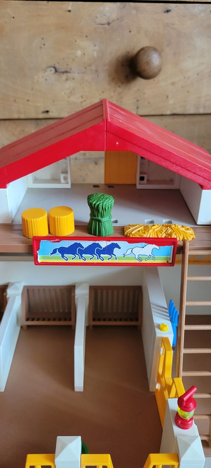 Structure d'écurie 4190. Vendu comme sur les photos 1 personnage, 2 chevaux, 1 poney, quelques accessoires