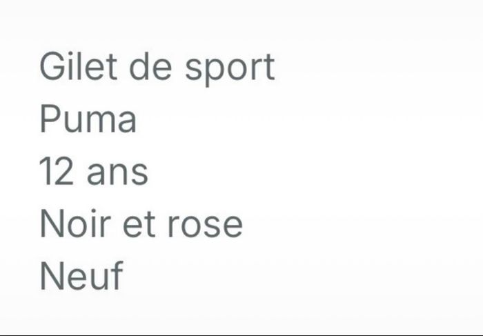 Gilet Puma Taille 12 ans Noir et rose Neuf