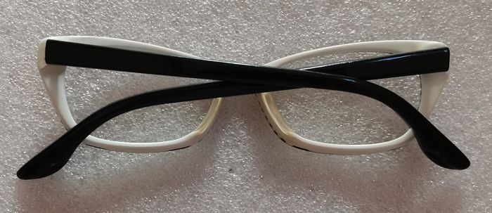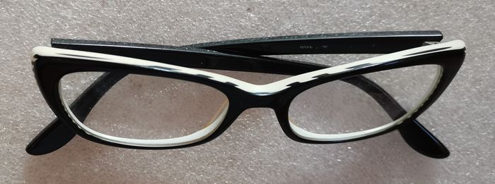 Lunettes de Vue "Le Temps de Cerises", modèle contemporain, monture noir et blanc, forme mi- carré, verres à remplacer à votre vue, (Marque quasiment effacé), bé, prix définitif.