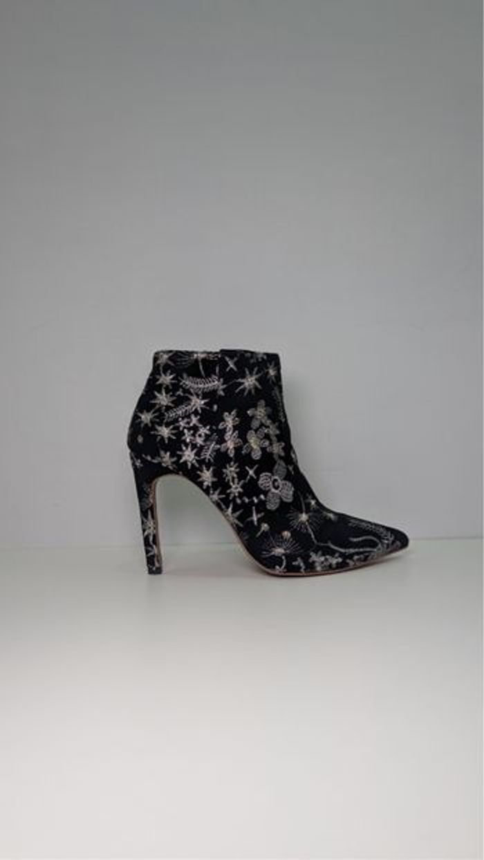 Bottines à talons noires broderies argentées - T37 - photo numéro 1