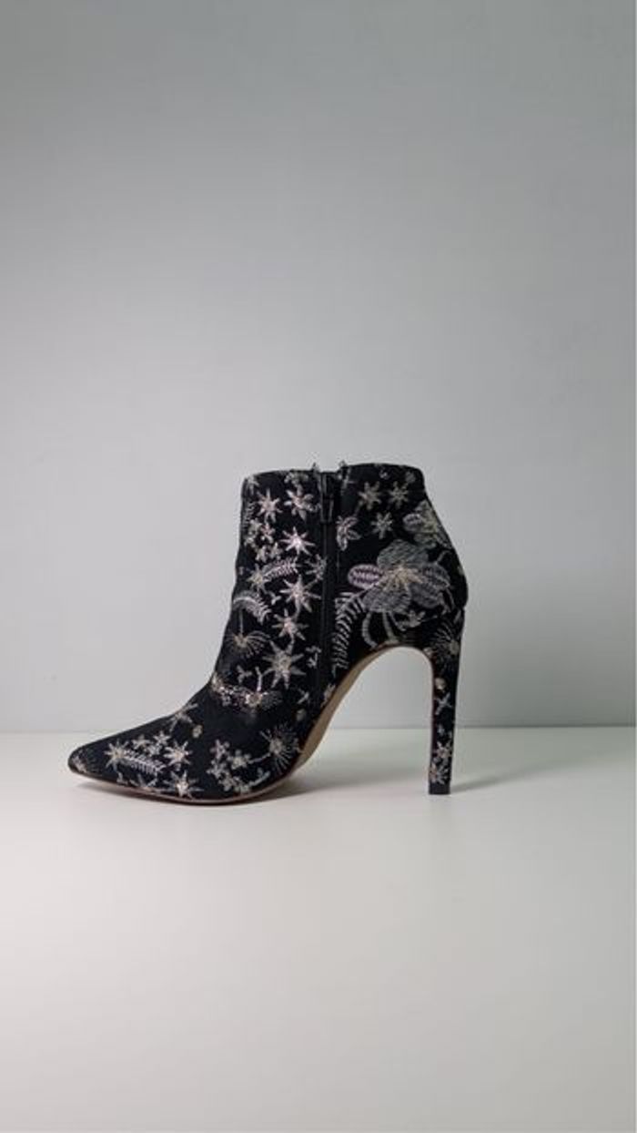 Bottines à talons noires broderies argentées - T37 - photo numéro 2