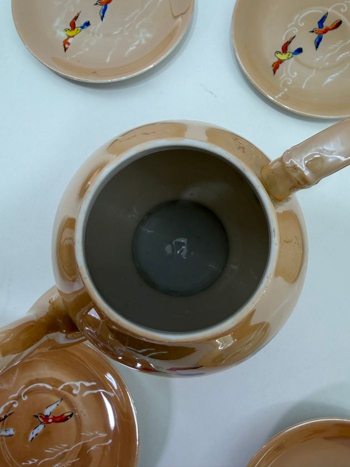 Service à thé japonais Orphelin Vintage Années 50 - Porcelaine lustrée & Oiseaux - photo numéro 7