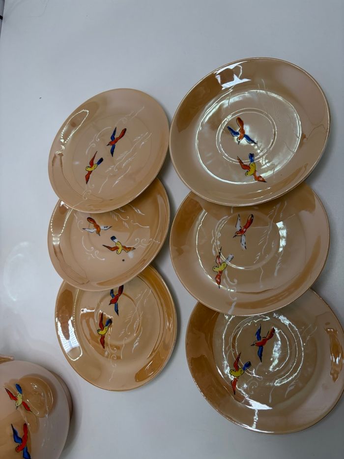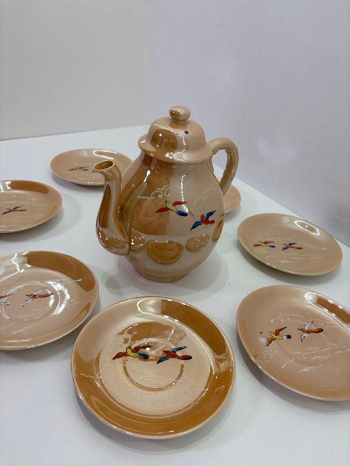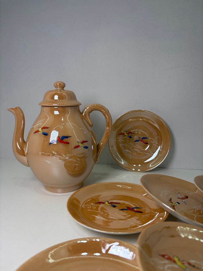 Service à thé japonais Orphelin Vintage Années 50 - Porcelaine lustrée & Oiseaux - photo numéro 1