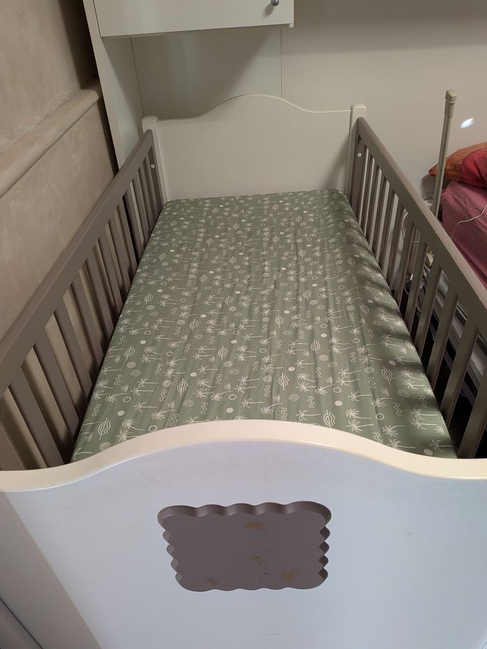 Lit à barreaux blanc et taupe Il est en très bon état ( juste quelques petites traces ) N'hésitez pas à me contacter en cas de besoin