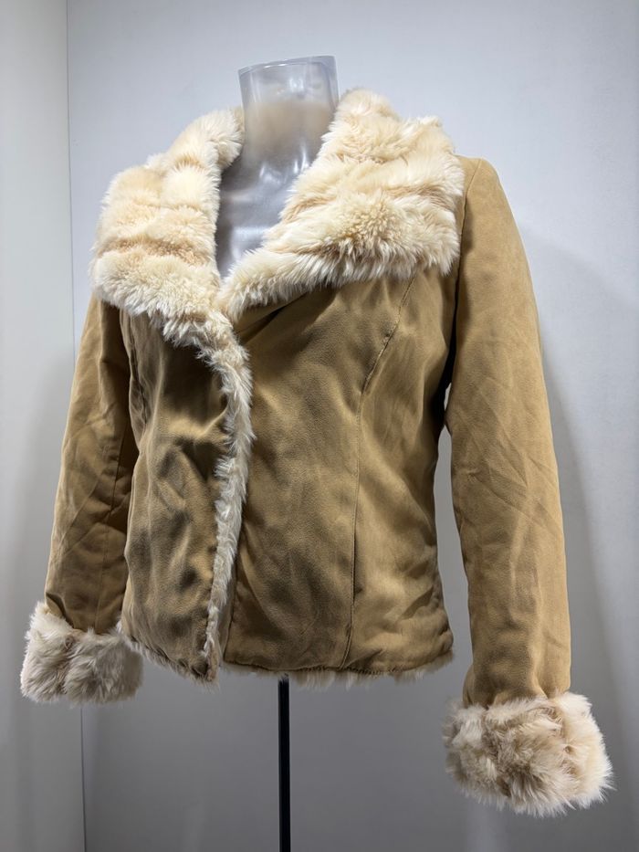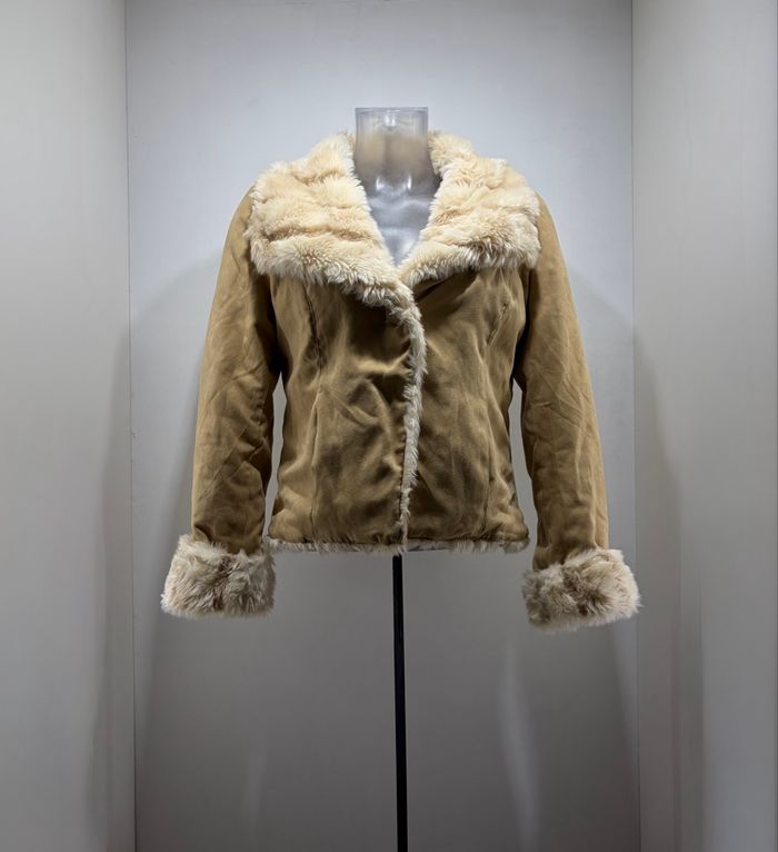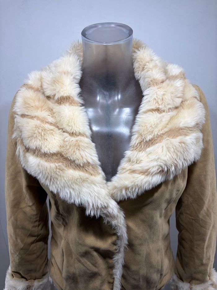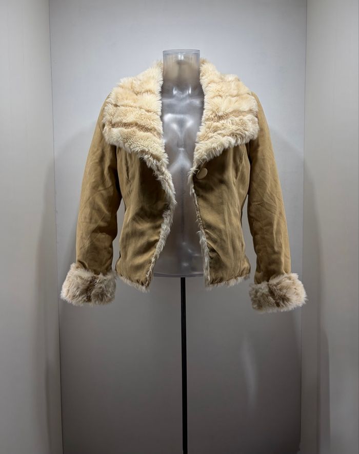 P Veste Vintage Mystic T38 – Suédine Camel & Fausse Fourrure – Style Y2K / Penny Lane - photo numéro 1
