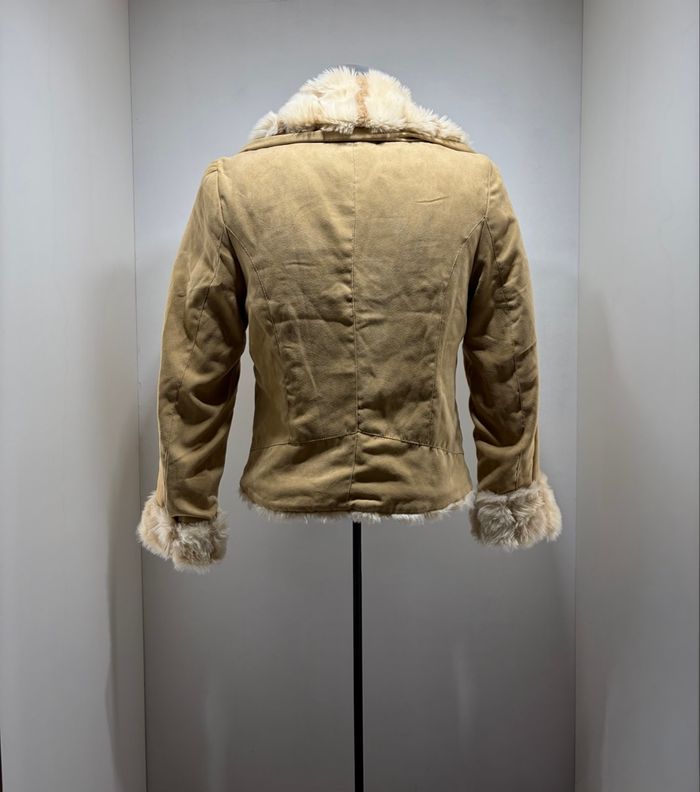 P Veste Vintage Mystic T38 – Suédine Camel & Fausse Fourrure – Style Y2K / Penny Lane - photo numéro 8