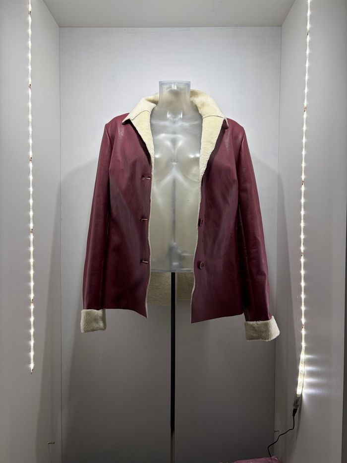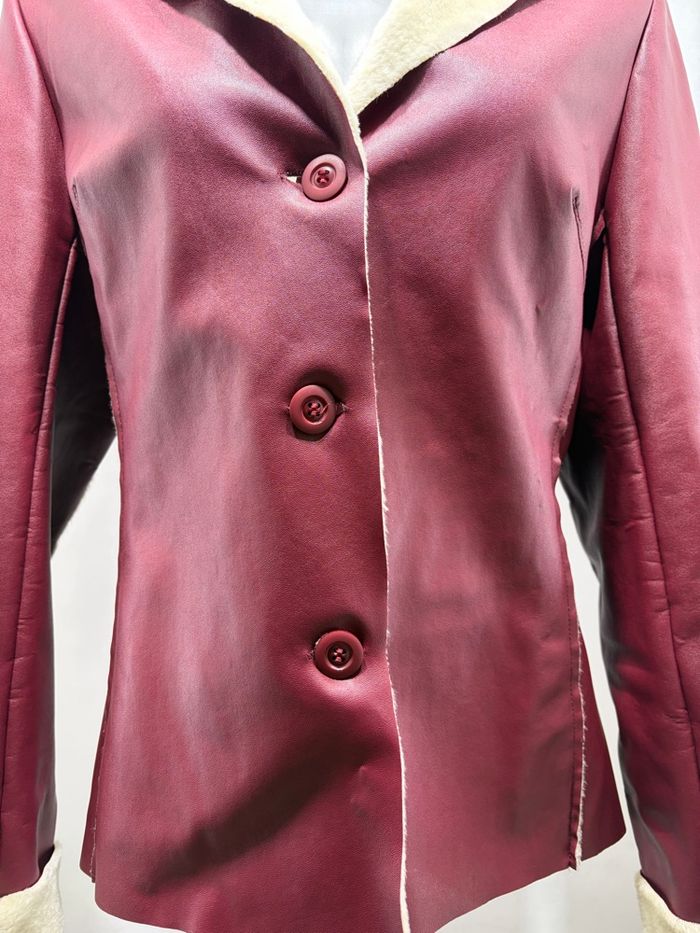 Veste Peau d'Hiver Bordeaux & Doublure Faux Mouton - Style Rétro Chic - photo numéro 2