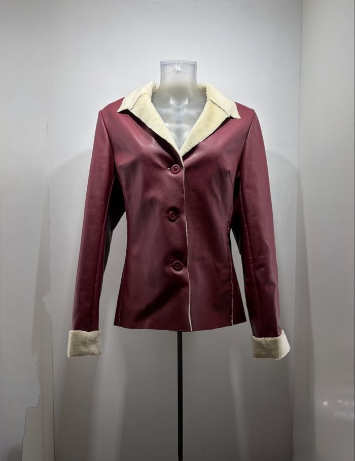 Veste Peau d'Hiver Bordeaux & Doublure Faux Mouton - Style Rétro Chic - photo numéro 1