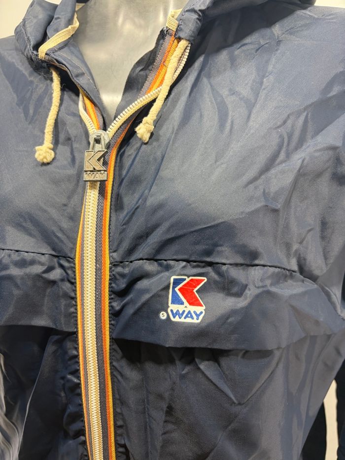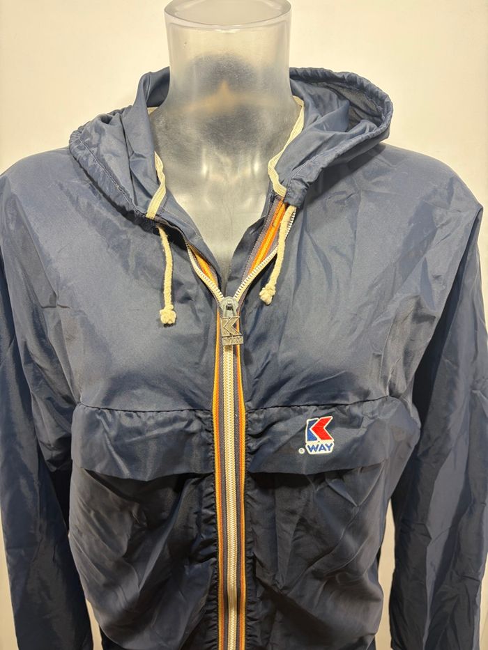 Lisez la description ! Veste Vintage K-WAY 80s Marine – Coupe-vent Retro Waterproof - photo numéro 3