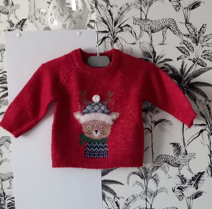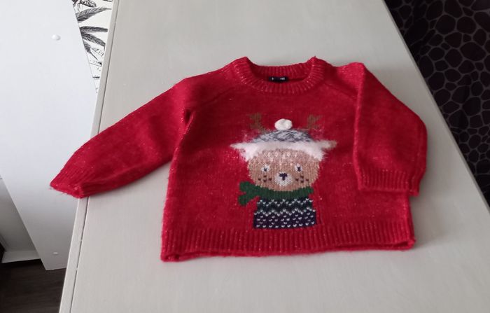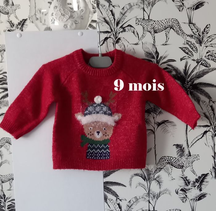 Pull lainage rouge Kiabi Motif bonhomme Jamais porté Taille 9 mois #9moisenfants_imoddeco
