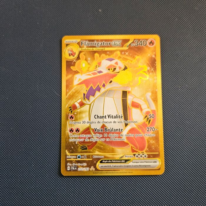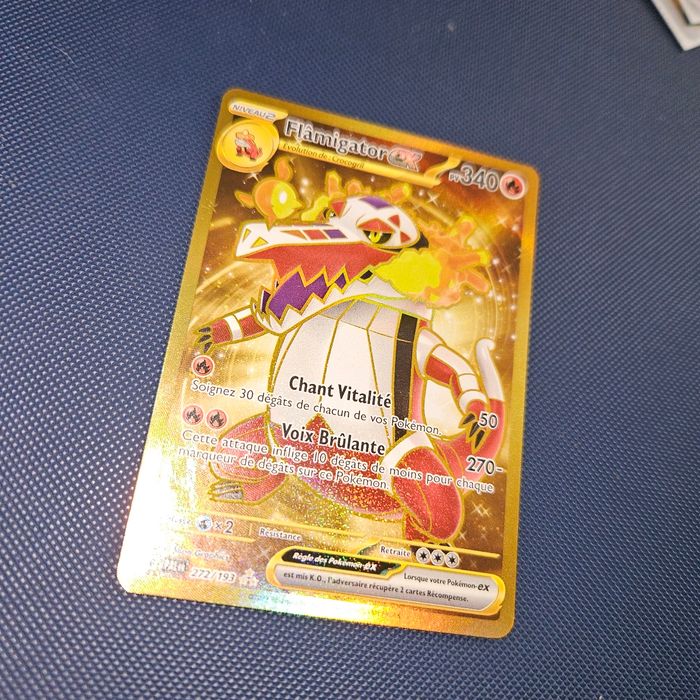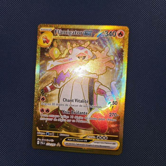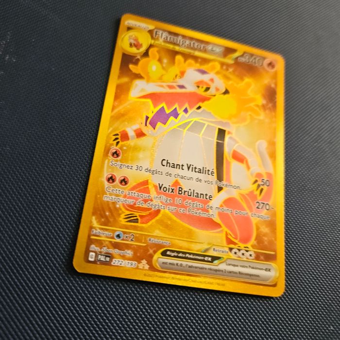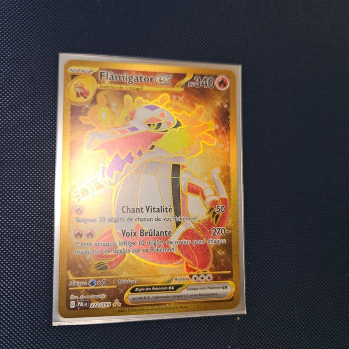Carte Pokémon Flâmigator ex Gold 272/193 – EV03 Obsidienne Flammes – Ultra Rare Prix : 11 € Description : Vend carte Pokémon Flâmigator ex Gold 272/193 issue de l’extension Obsidienne Flammes. Carte originale en excellent état (sortie de booster, directement protégée). Aucune rayure, coins propres, parfaite pour collection. ✨ Ultra Rare – version dorée 📦 Envoi soigné sous sleeve + toploader + carton 📮 Expédition rapide ou remise en main propre possible Idéale pour collectionneur ou joueur. D’autres cartes Pokémon disponibles sur mon profil