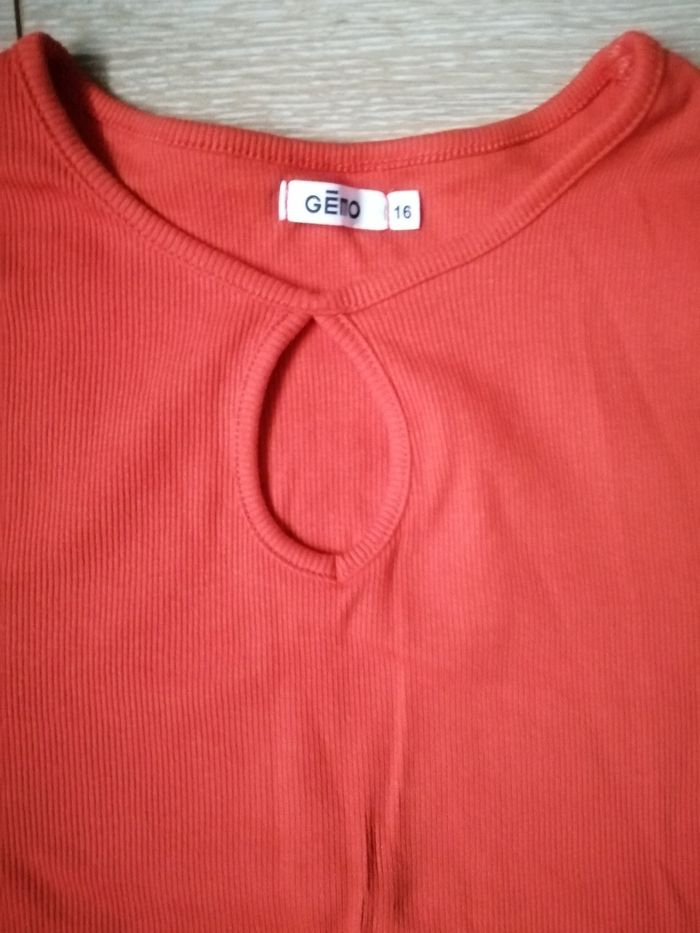 T-shirt orange, avec "1 goutte" devant sous le cou.