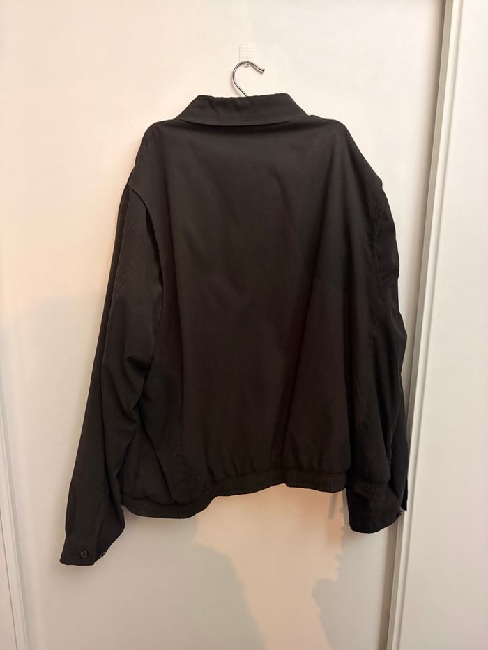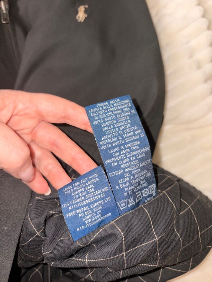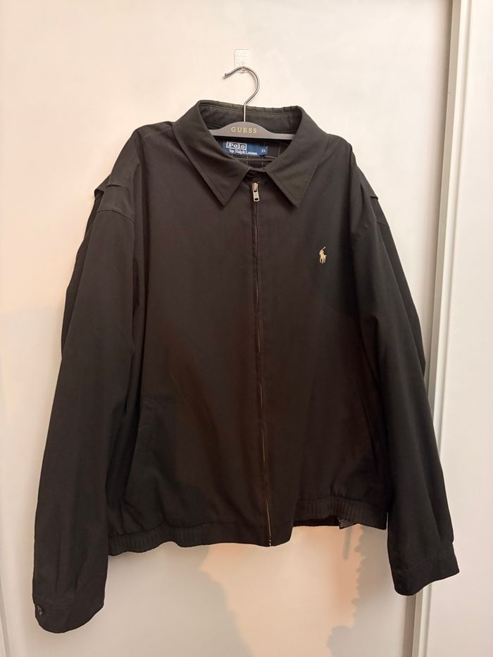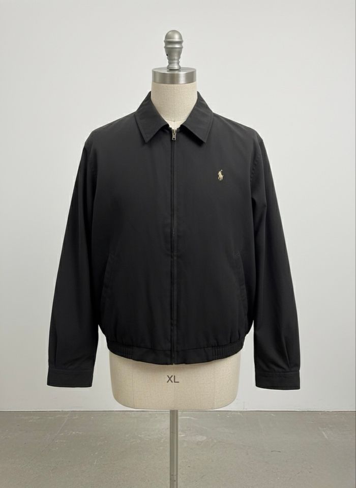 > Je vends ce Blouson Harrington Polo Ralph Lauren noir avec doublure intérieure à carreaux. > * Pourquoi je m'en sépare : Mon mari l’a porté une seule fois car elle était un peu trop grande pour lui. Je fais donc un grand tri dans son dressing. > * État : Porté une seule fois, il est en excellent état (proche du neuf). Les finitions sont impeccables, le logo est brodé avec soin et les étiquettes de composition sont parfaitement lisibles. > * Coupe/Taille : C'est une taille XL. Il possède une coupe classique ("Harrington"). >