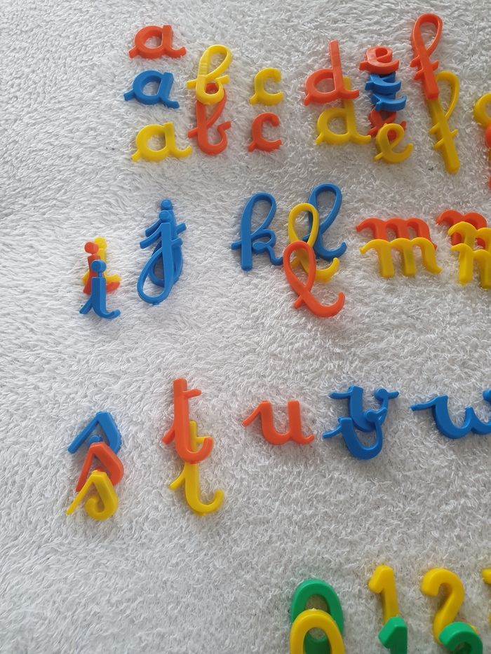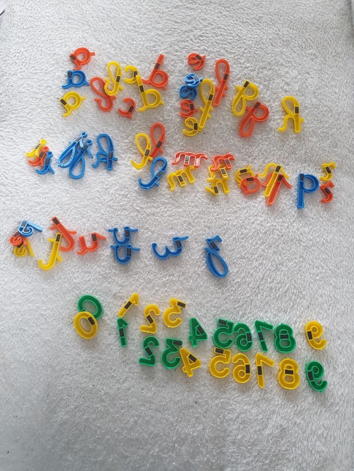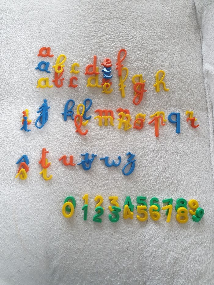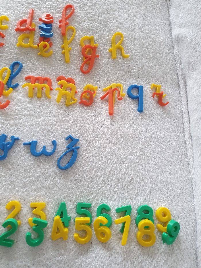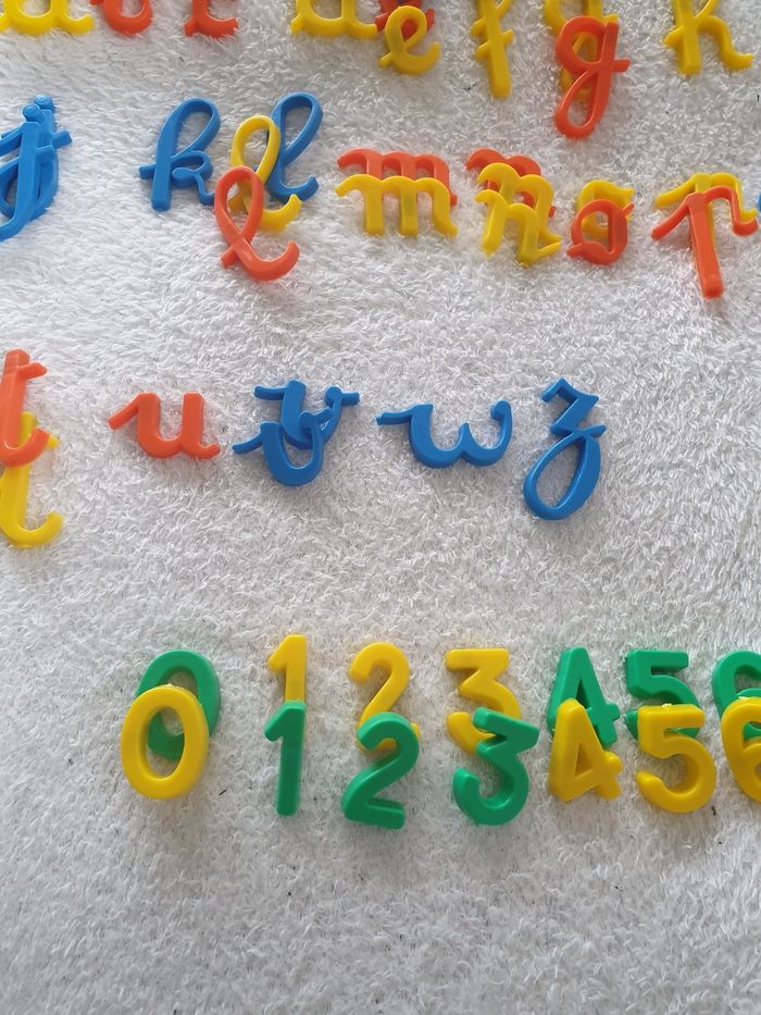 Ensemble d'environ 70 chiffres et lettres (lettres en minuscules). Avec un aimant. Produits des années 80-90 mais en parfait état.